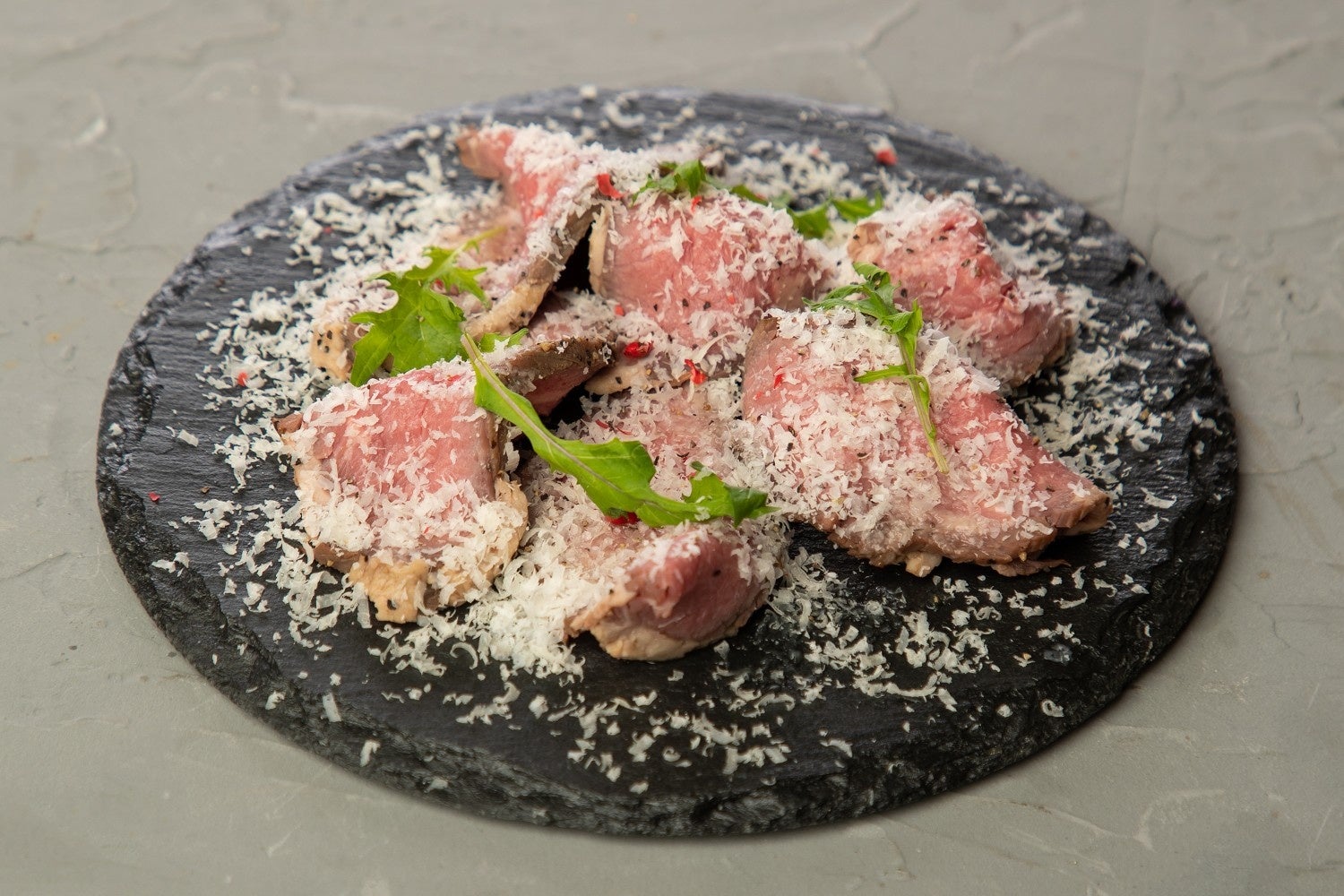旨味が詰まったローストビーフに たっぷりチーズを削った定番タパス!