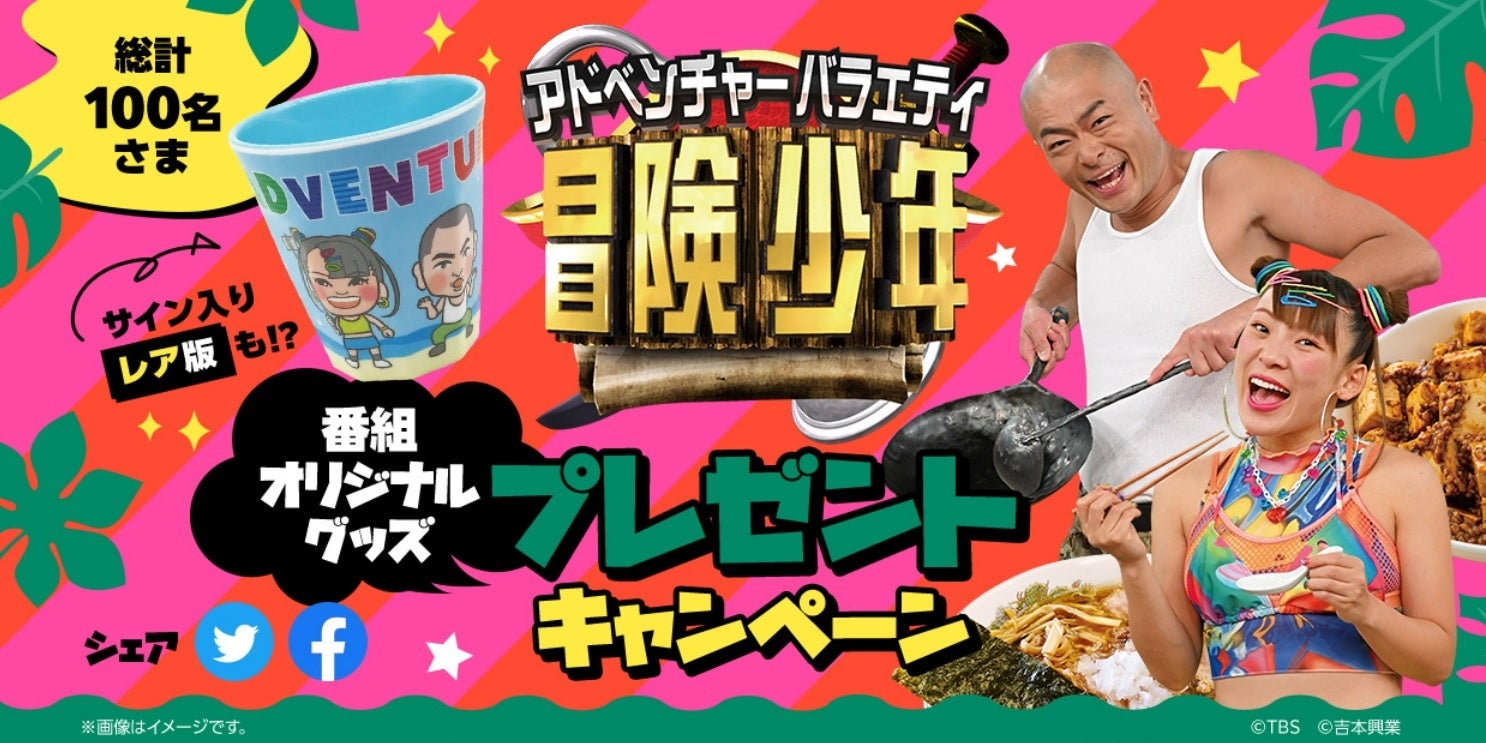 本商品のパッケージ裏面に付いている応募マーク1枚の応募でTBS系『アイ・アム・冒険少年』番組オリジナルのメラミンコップが総計100名様に当たるキャンペーンを実施します。100名様の内、20名様にはレア版として「あばれる君」か「フワちゃん」のいずれかのサインが入ったメラミンコップが当たります。詳しくはキャンペーンページをご覧ください。