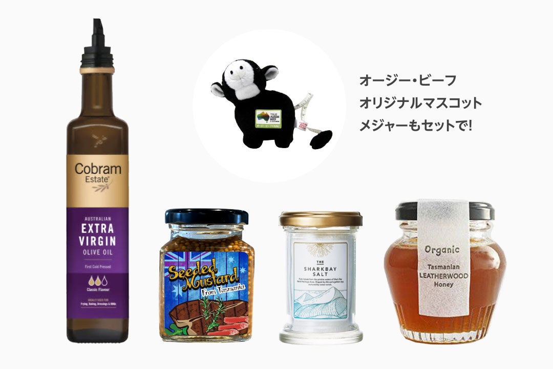 第二弾のキャンペーンではオージー・ビーフの厚切りステーキ肉、食べ比べセットをはじめ、オージー・ビーフを一層おいしく食べるためのキッチンツールなど素敵な賞品が抽選で129名様に当たります。
