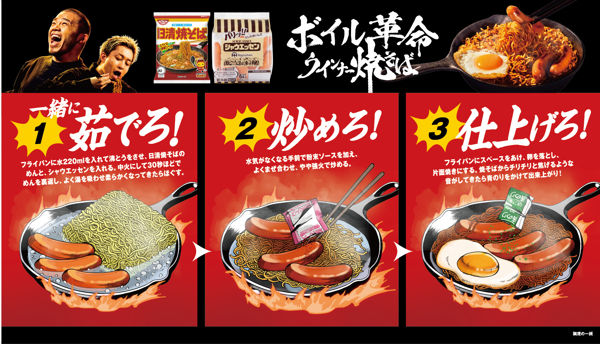 胃袋を掴み、ハート揺らす『ボイル革命ウインナー焼そば』をぜひお試しください!