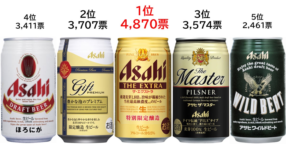 第2位は「豊かな泡のプレミアム」、第3位「ザ・マスター」、第4位「ほろにが」、第5位「ワイルドビート」となりました。2位以下の商品は、今後発売を予定している新商品や市場の動向を見ながら、発売を検討していきます。