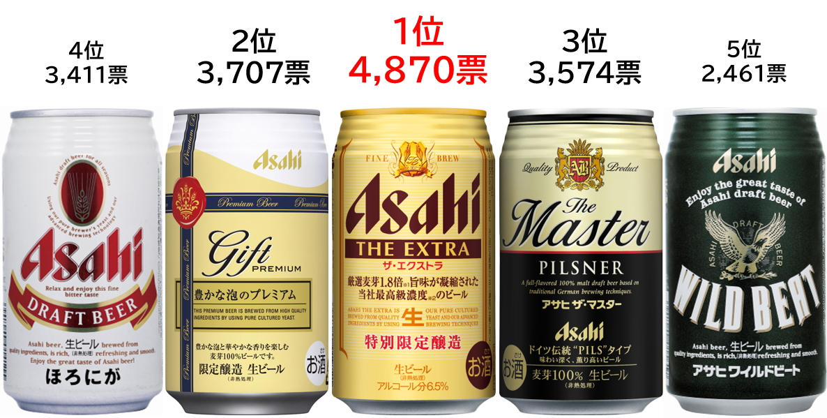 第2位は「豊かな泡のプレミアム」、第3位「ザ・マスター」、第4位「ほろにが」、第5位「ワイルドビート」となりました。2位以下の商品は、今後発売を予定している新商品や市場の動向を見ながら、発売を検討していきます。