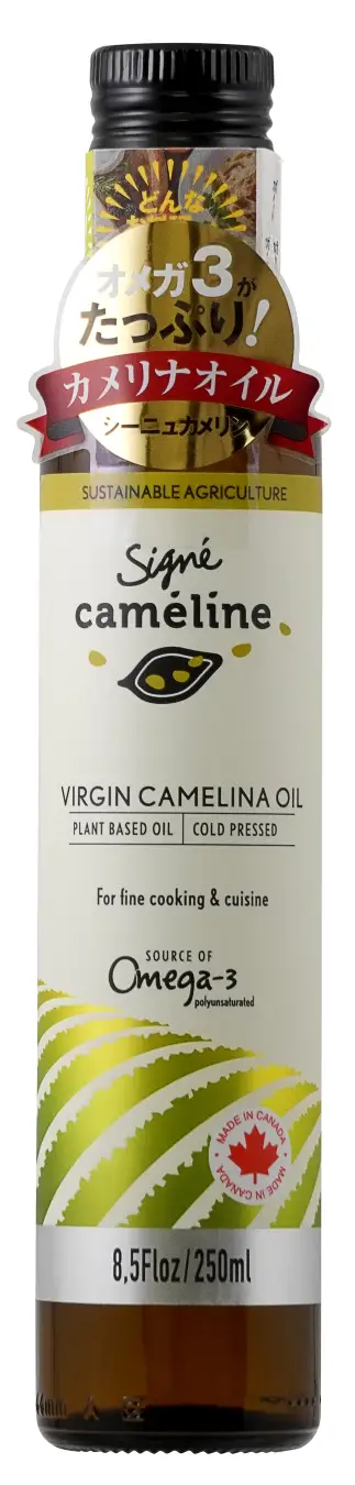 カナダ・ケベック州のカメリナ油ブランド「シーニュカメリン」の『バージンカメリナオイル 250ml』、注目の必須脂肪酸オメガ3を含有する未精製の100%ピュアカメリナオイルです。オメガ3・オメガ6・オメガ9が理想的なバランスに近い比率で含まれています。また加熱調理が可能なため、そのまま生でサラダにかけるだけでなく、炒めたり焼いたりと普段の様々な料理にお使いいただけます。