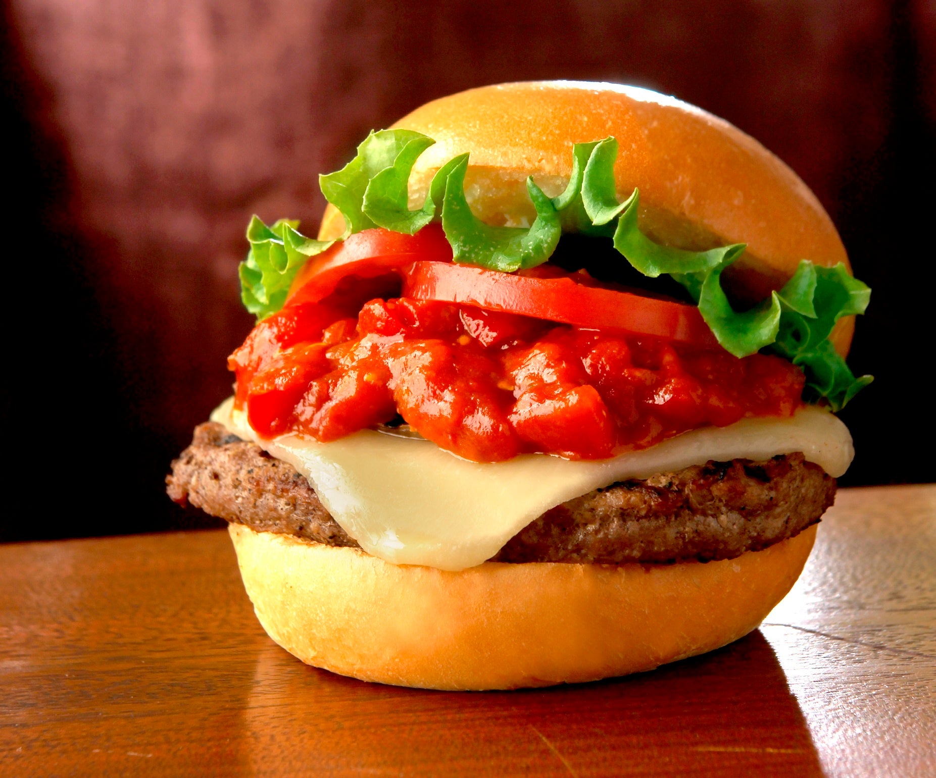 『スパイシーバーガーシリーズ』は、数種類の野菜と5種類のスパイスをじっくり煮込み、仕上げにフレッシュなトマトと甘みのあるセミドライトマトを加えた特製の「スパイシーソース」と、自慢の溶岩石グリルで焼き上げた、牛肉100%のパティの旨みが楽しめる夏にピッタリなグルメバーガーシリーズです。