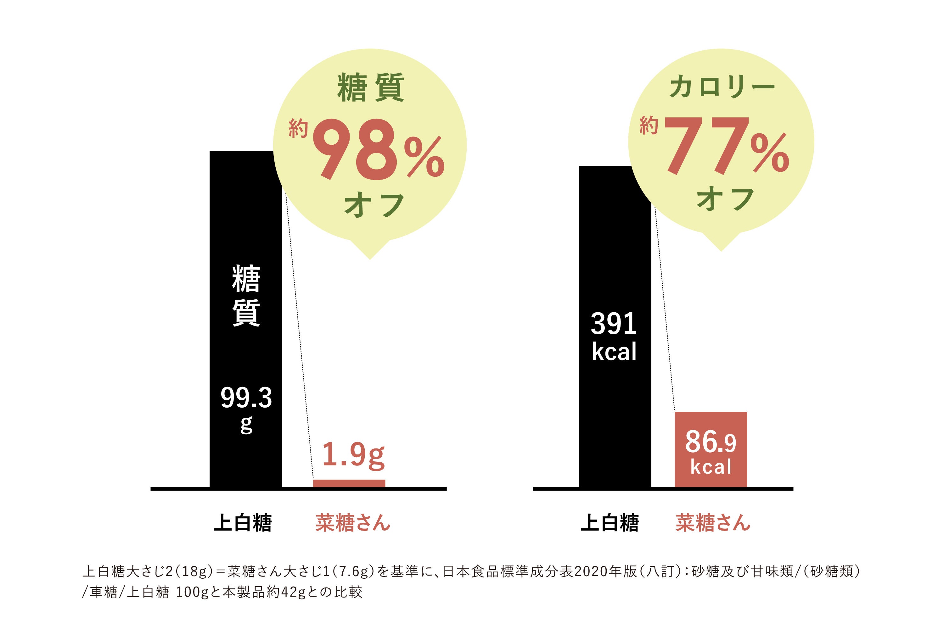 (2)砂糖と比べ、糖質98%オフ!カロリー77%オフ!