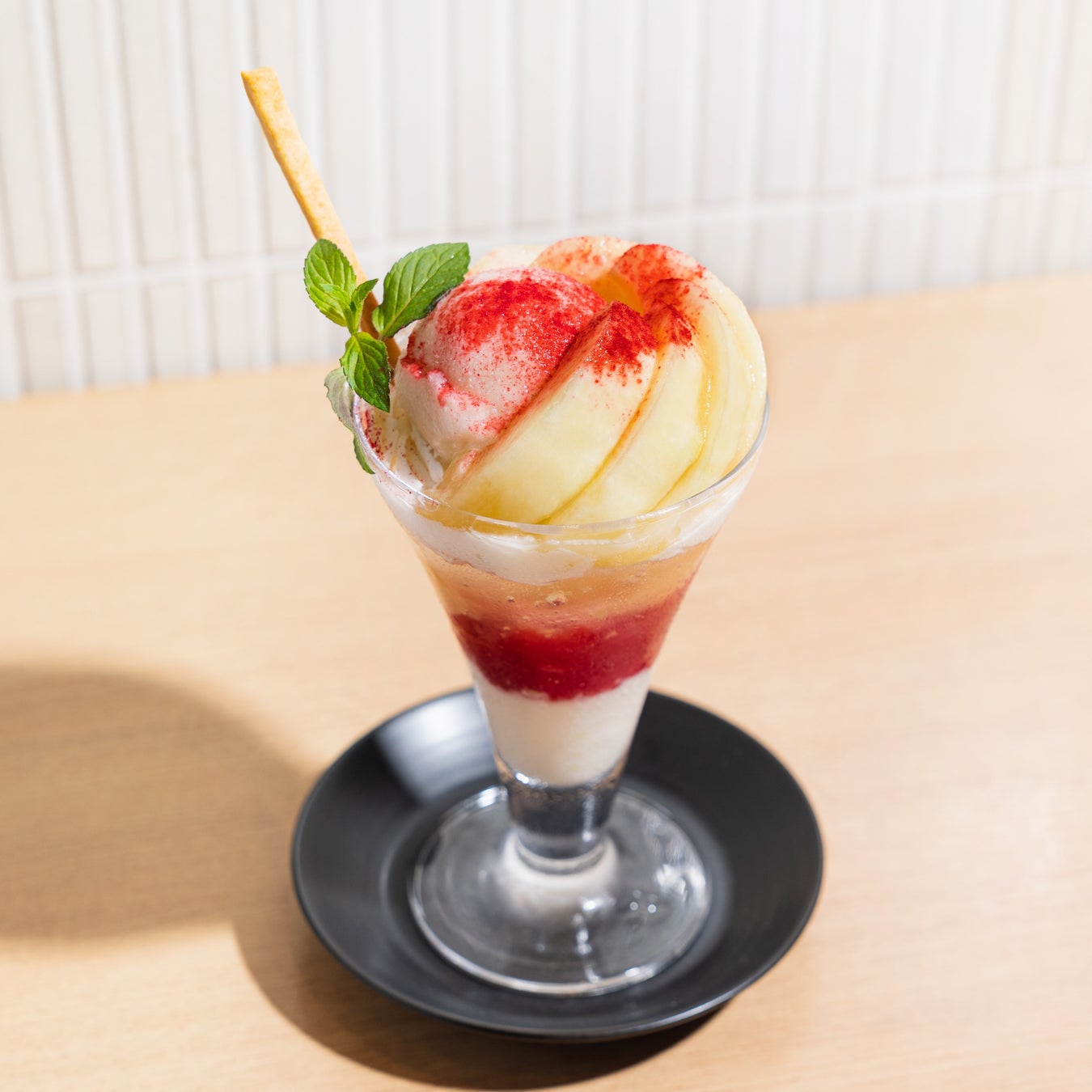 旬の白桃をあしらった見た目にも爽やかな夏季限定のパフェです。