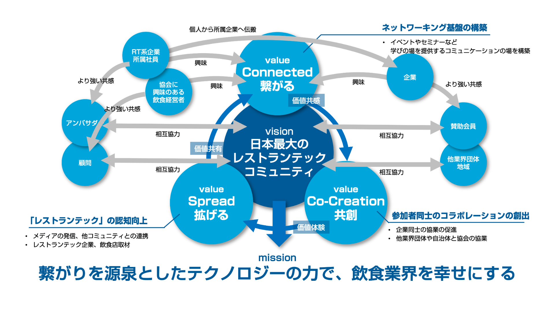 「テクノロジーの力で、飲食業界を幸せにする」をミッションに、飲食業界のデジタルトランスフォーメーションを推進するための様々な活動を行っています。
