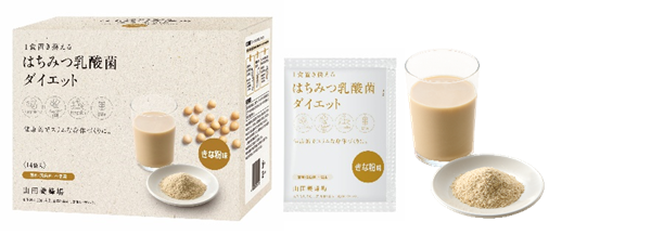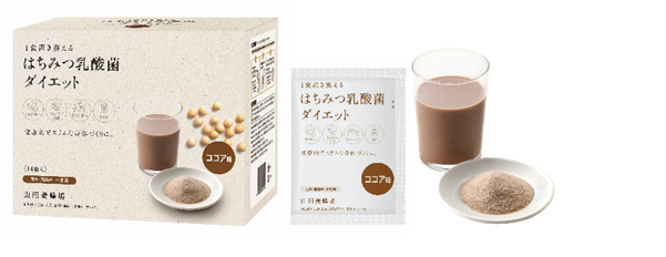 本商品は、独自素材「はちみつ乳酸菌YB38※2」や、「花粉荷※3」、はちみつにも含まれる「マルトビオン酸※4」など、ミツバチの恵みを取り入れ、スムーズなダイエットをサポートする自然派の置き換えダイエット食です。基礎代謝の維持に欠かせない「大豆たんぱく」とビタミン・ミネラルを配合し、健康的なダイエットを応援します。香料・着色料は使用せず、大豆と相性の良い 「ココア」、「きな粉」、「黒ごま」の3種類のフレーバーをご用意。毎日続けやすい、サラッとした飲み口に仕上げました。