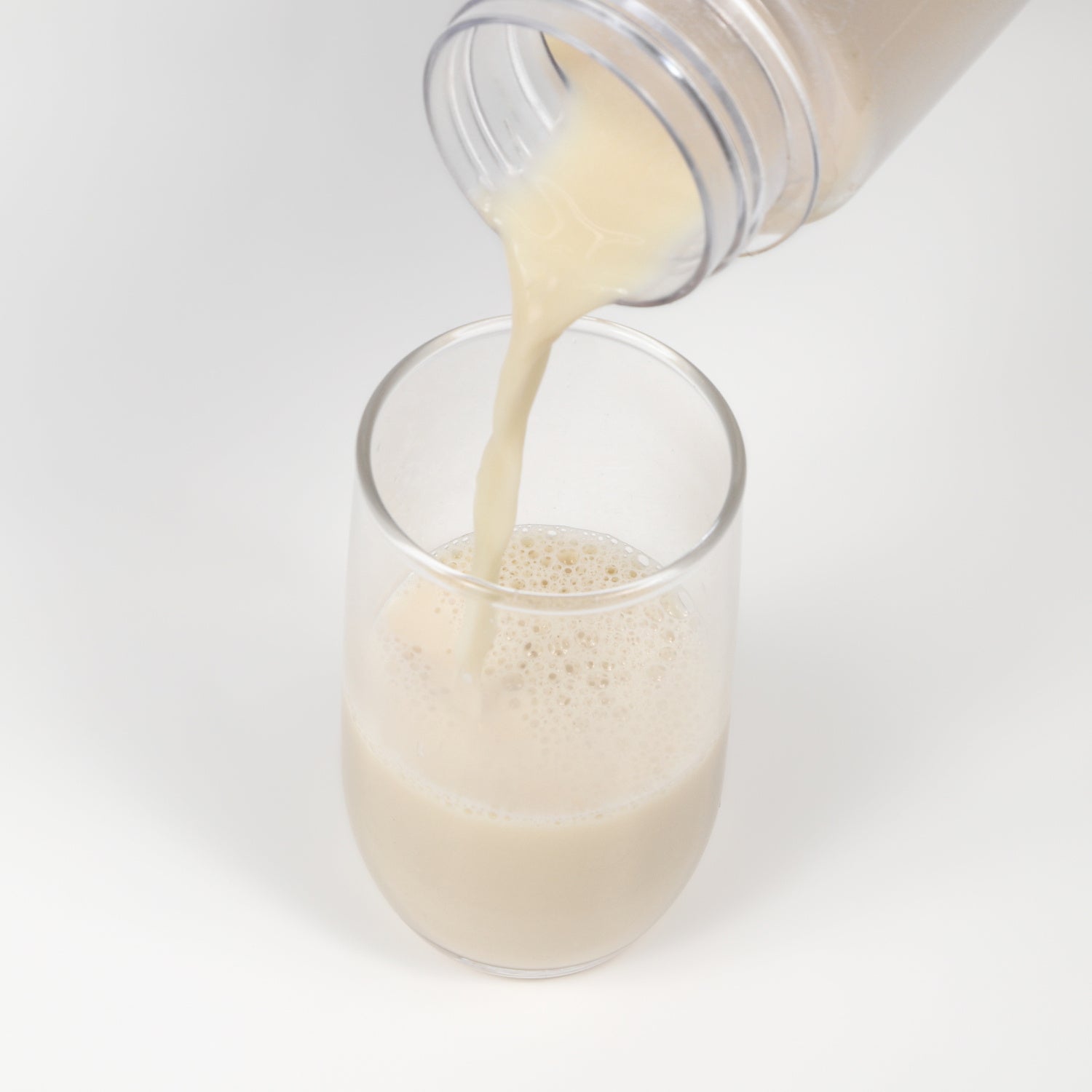 1.水や牛乳100〜200ccをシェイカーなどの器に、水を入れる。(お湯は避ける)