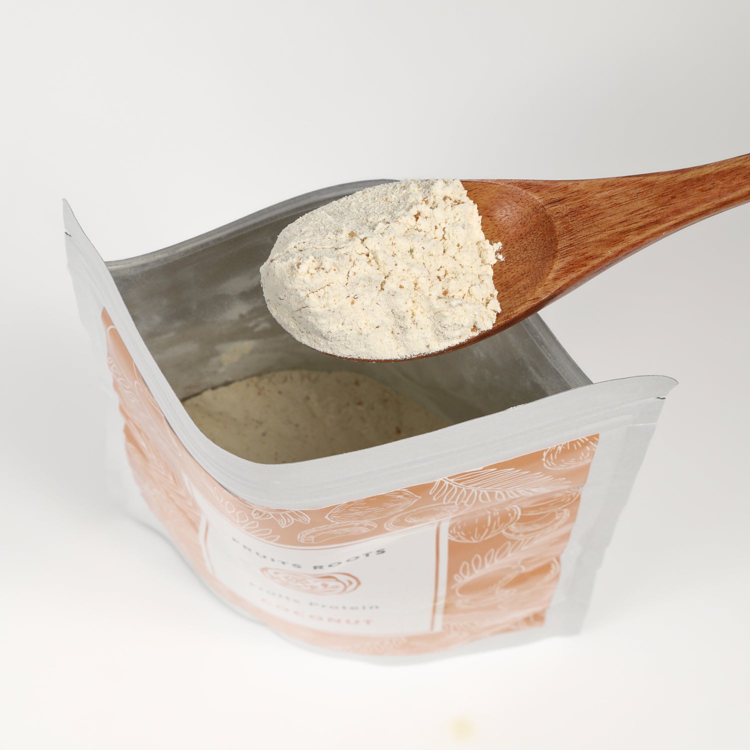 分離大豆タンパク質、ココナッツの花蜜、イヌリン、サンゴカルシウム/ビタミンミックス(V.C、抽出V.E、ナイアシン、パントテン酸Ca、V.B1、V.B6、V.B2、V.A、葉酸、V.D、V.B12)、ステビア、ピロリン酸第二鉄 |