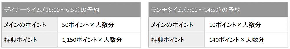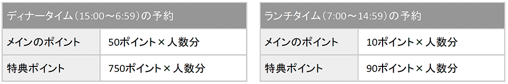 ※1回の予約で特典ポイント還元対象となるのは最⼤4名様分までとなります。4名様以上で来店する場合、特典ポイントは⼀律4名様分となります。