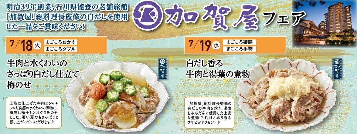「ワタミの宅食」では、お弁当・お惣菜の献立に石川県和倉温泉の老舗旅館「加賀屋」総料理長監修の白だしを使用しており、お客さまからご好評をいただいております。