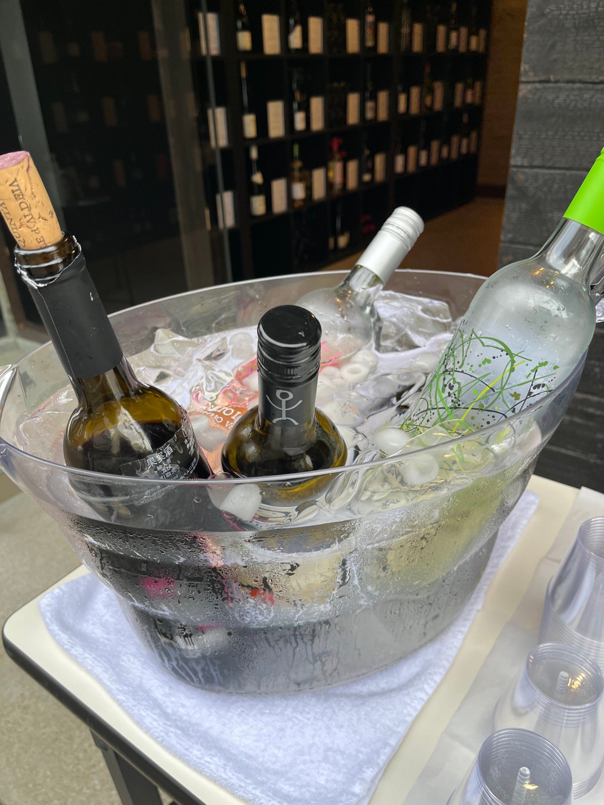 カップ片手に飲みながら、涼しい店内でゆっくりワインをご覧いただくのも大歓迎です。