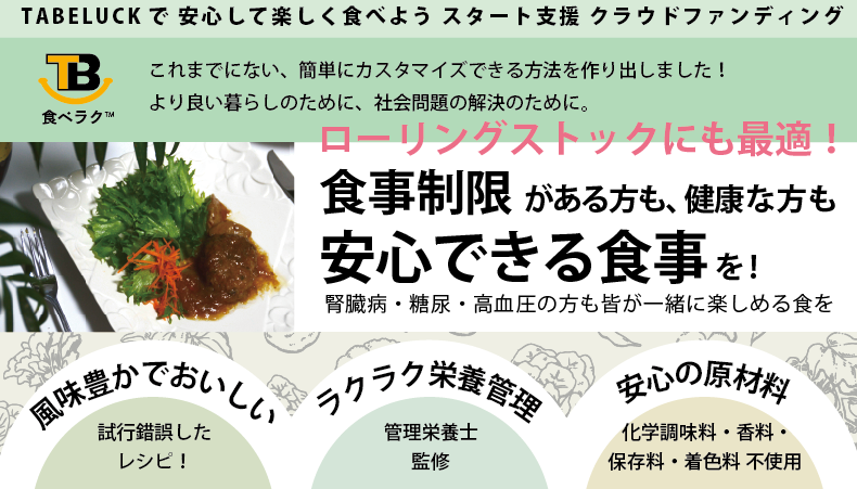 制限食や減塩をしなければならない方、健康に配慮されている方に広く認知していただくとともに、今後事業拡大に伴って様々な施策を行っていくためにクラウドファンディング開催中です。現在、60万円を突破(7月3日現在)。役立つ社会貢献事業に賛同をいただいた方、実際の体験によりご支援くださる方などがいらっしゃいます。皆さまのご支援・ご協力をお待ちしております。