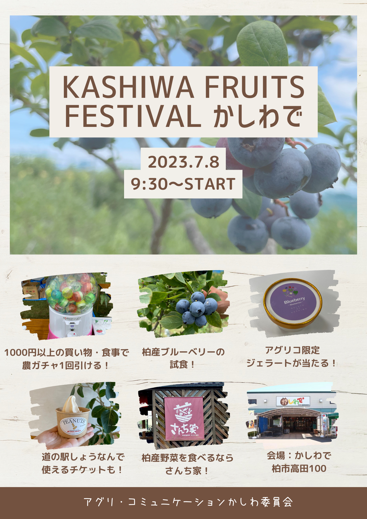 アグリ・コミュニケーションかしわ委員会が贈る夏のイベント「KASHIWA FRUITS FESTIVAL かしわで」を開催します。