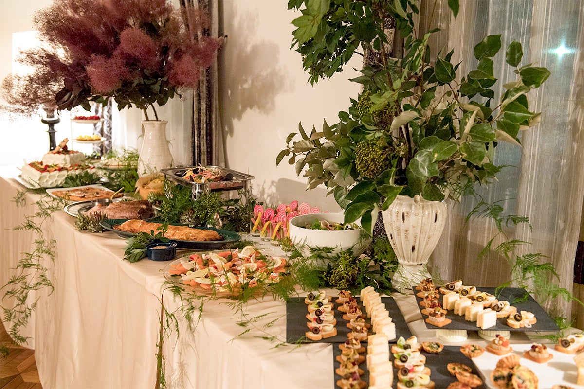 料理皿でのプレゼンテーションなど、パーティーを華やかに彩るビュッフェスタイルです。