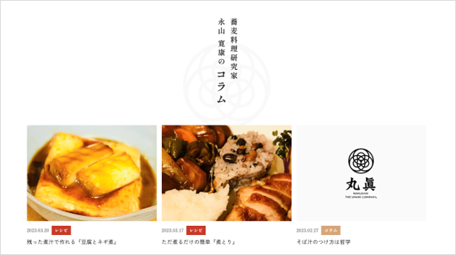 また、蕎麦料理研究家 永山 寛康 様が「丸眞」アンバサダーに就任。永山様のコラムやレシピを連載しております。
