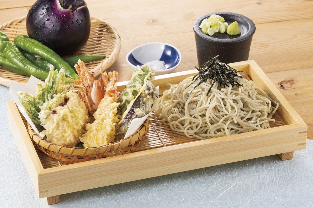 わざわざ電車に乗らなくていい、有名な老舗までいかなくてもいい。 一緒に遠出できなかった家族や友人と一緒に、自分へのご褒美や大切な人との記念日に、自宅の近隣でゆったりと食事ができる「天丼はま田」にて夏の新作「鱧と京野菜の天盛りと青じそそば」を2023年7月7日(金)より販売開始いたします。