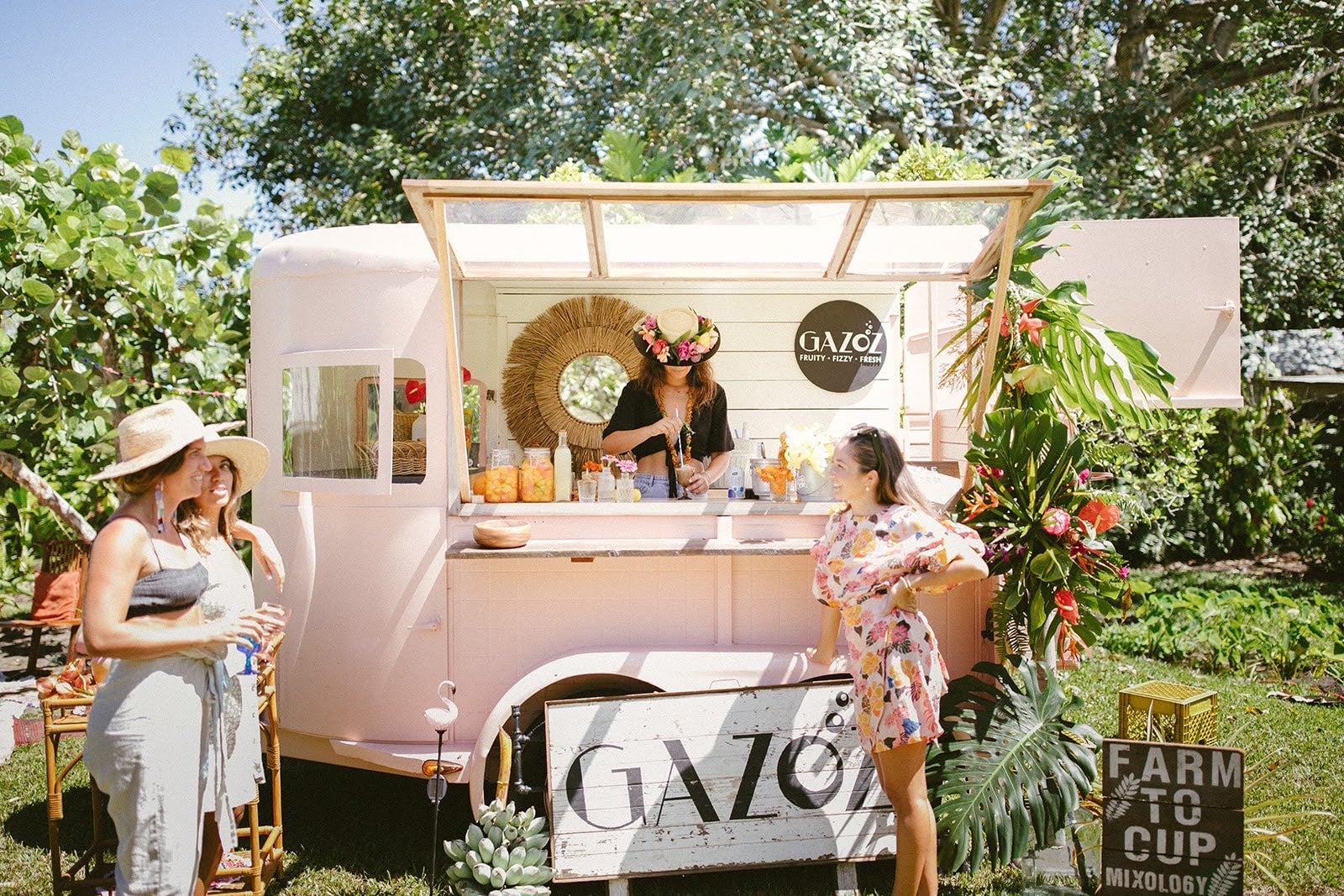 ハワイのイベント・宿泊施設「Treehouse Hawaii」の経営者である梅田えみが、イベントを企画した際に、ピンクのビンテージホーストレー ラーでDrink Gazozがやってきたのがきっかけです。子供から大人まで幅広い年齢の人々が、フラワードリンクを片手に 満面の笑みを浮かべ楽しい時間を過ごしていました。それを見た梅田は、“可愛いと美味しい”のパワーに感動し、「これで日本の人々も ハッピーにしたい」と強く思い、オーナーDanielle Shemeshとのライセンス契約を経て、「Drink Gazoz Japan」を設立しました。