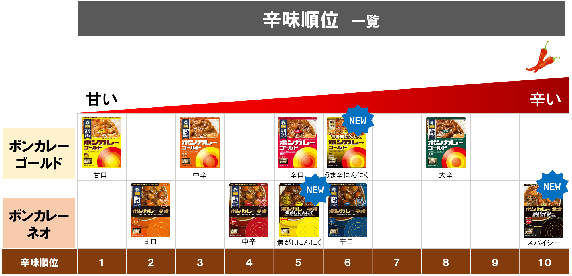 直近のレトルトカレー市場は昨年に引き続き堅調に推移しています。この数年、自宅で料理をする機会が増えたことをきっかけに、簡便性、時短などの魅力からレトルト食品のトライアルユーザーが増加したことが要因の一つと考えられます。その中で、食事に刺激的な辛さや香りを求めるニーズの拡大により、激辛メニューや「にんにく・ガーリック」味の商品が増加傾向にあります。このたび、このような市場背景や生活者の嗜好に対応すべく、6年ぶりにボンカレーゴールド・ボンカレーネオに新アイテムを追加。本ブランドのラインアップは8シリーズ20品目に拡充されます。