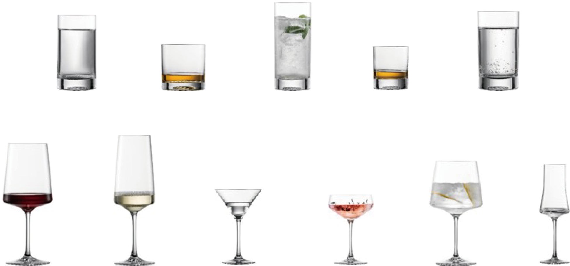 5種のタンブラーと6種のステムウェアの計11種類のサイズで構成されたこのシリーズは、総合的なバーウェアシリーズとして、様々なドリンクに適したグラスを取り揃えています。