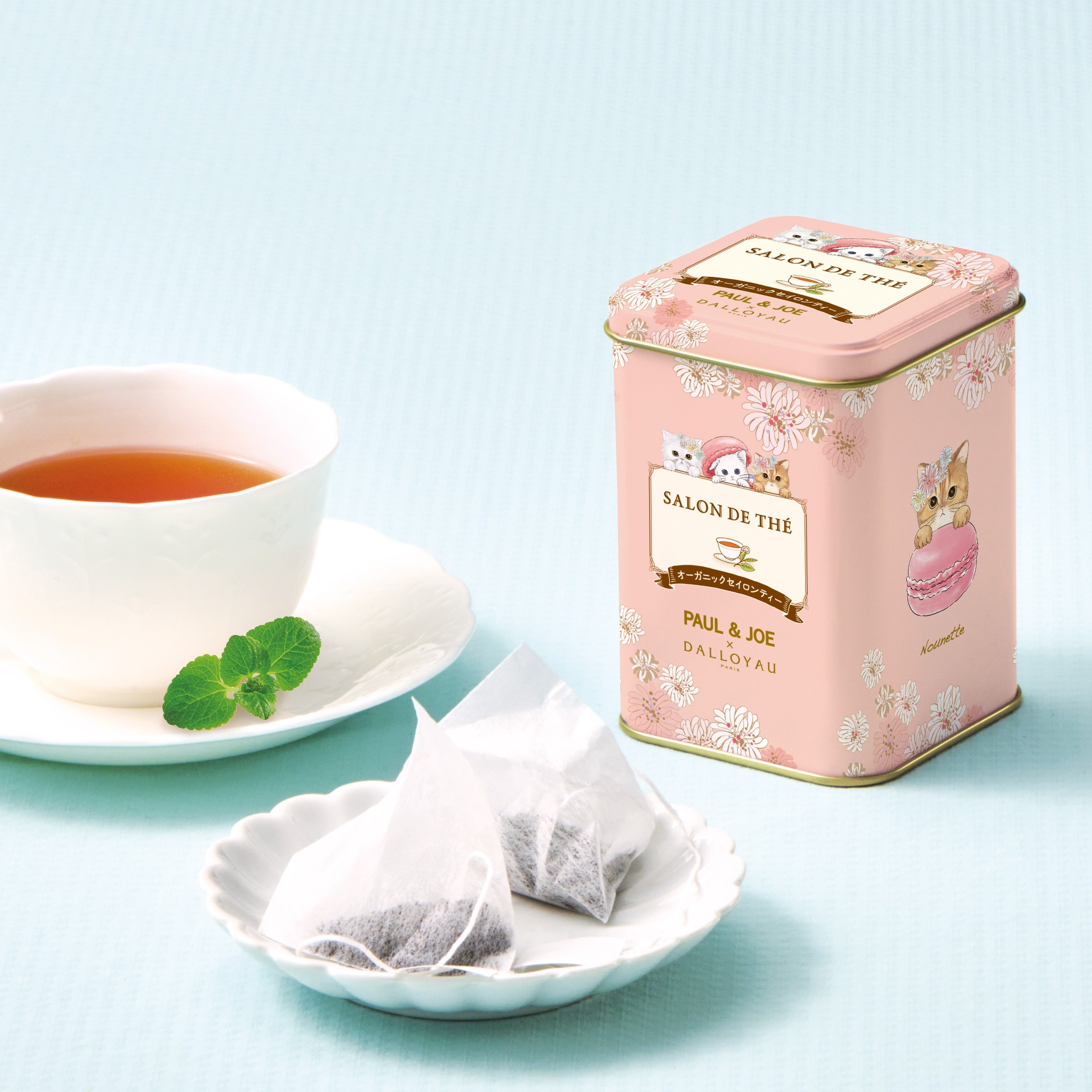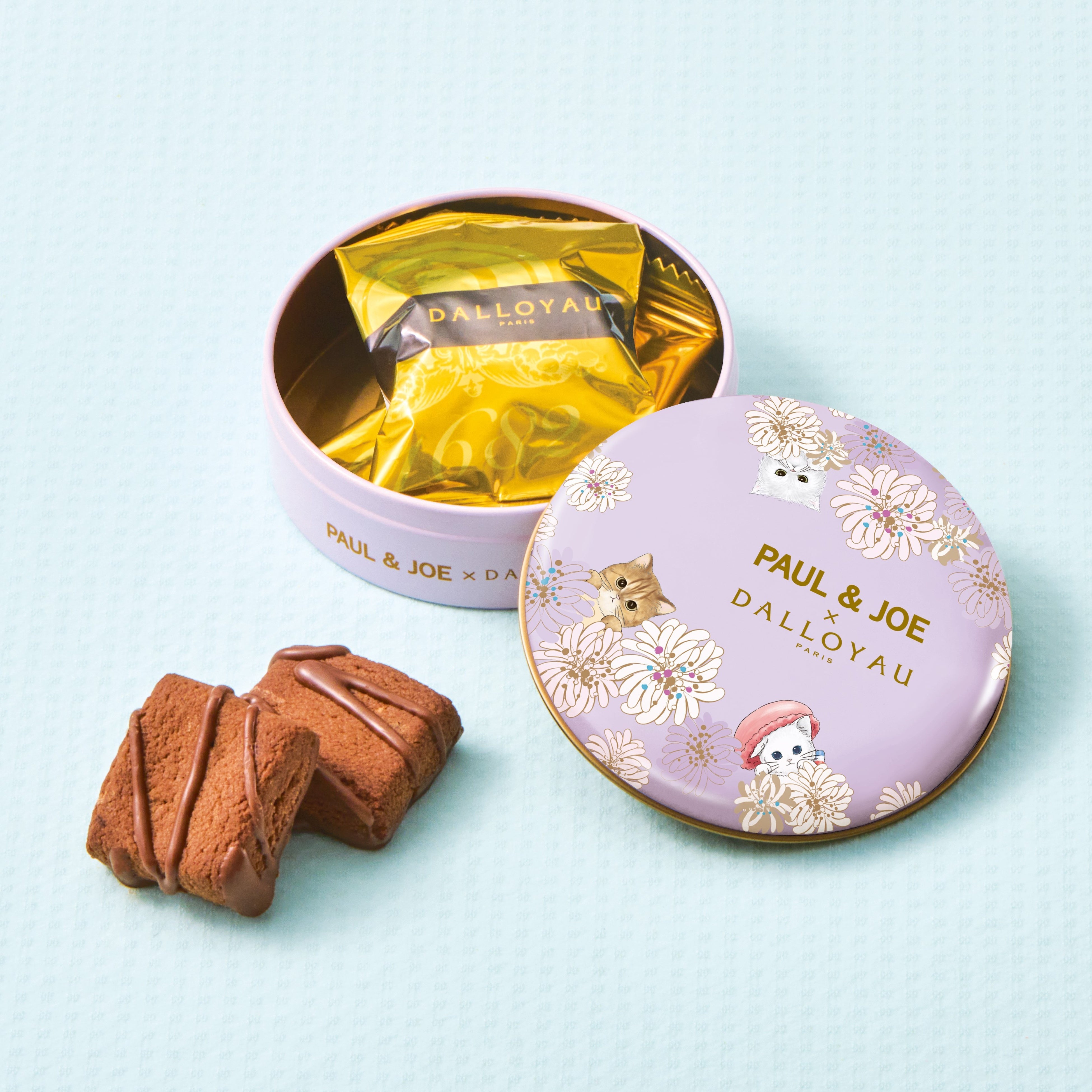 ※『ガトー ミャオ缶(イエロー)』、『ニャカロンラスク缶(ピンク)』、『ニャカロンラスク缶(グリーン)』、『サロン ド テ(缶入)オーガニック セイロンティー』、『PAUL & JOE × DALLOYAU 限定ショッパー』は、PAUL & JOE一部店舗、PAUL & JOE公式オンラインストアのほかダロワイヨ店舗、ダロワイヨ公式オンラインショップでも販売いたします。