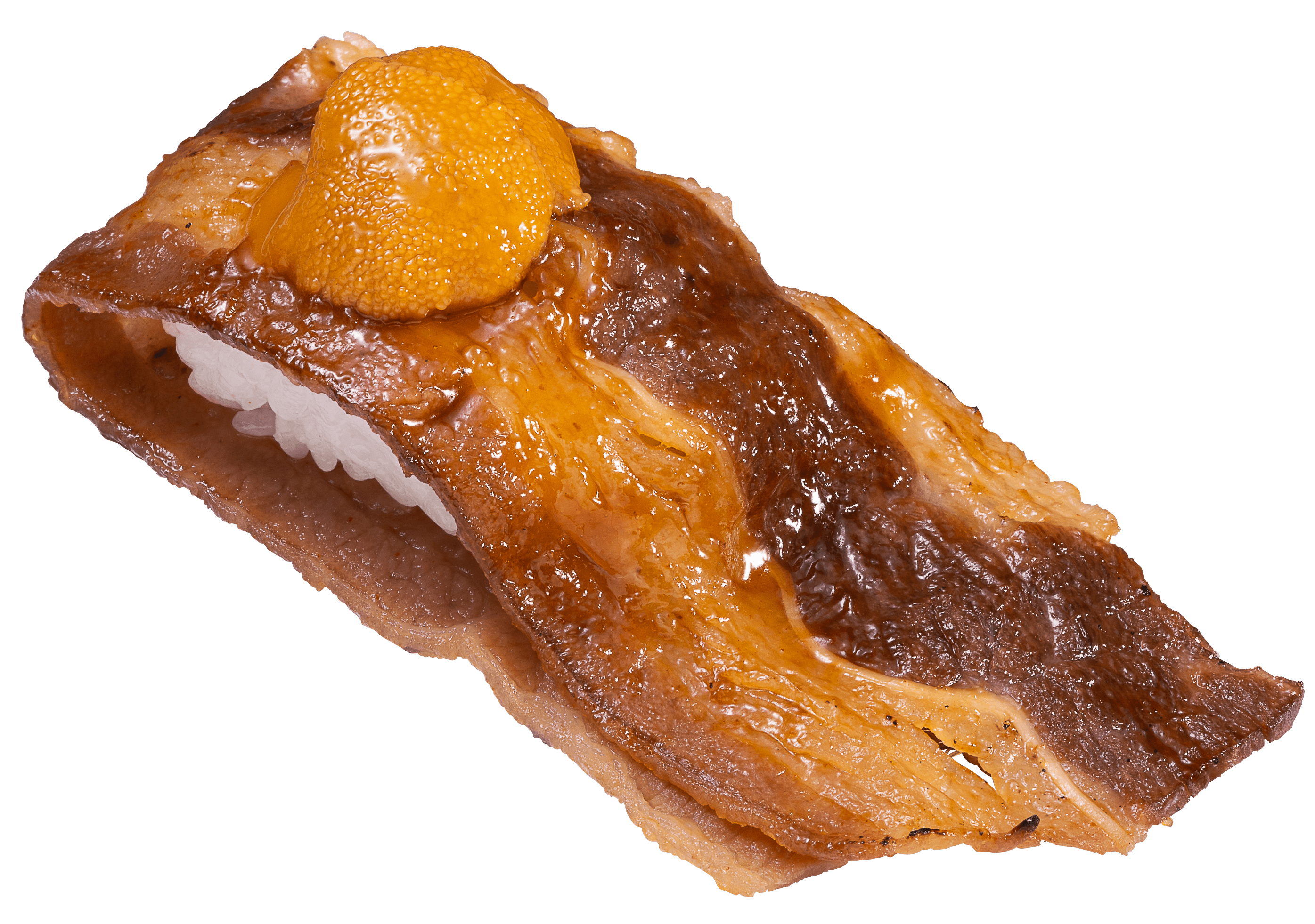 炙った大切り牛カルビの程よい脂のコクと旨みに、うにの濃厚な味わいが相性の良い一品です。