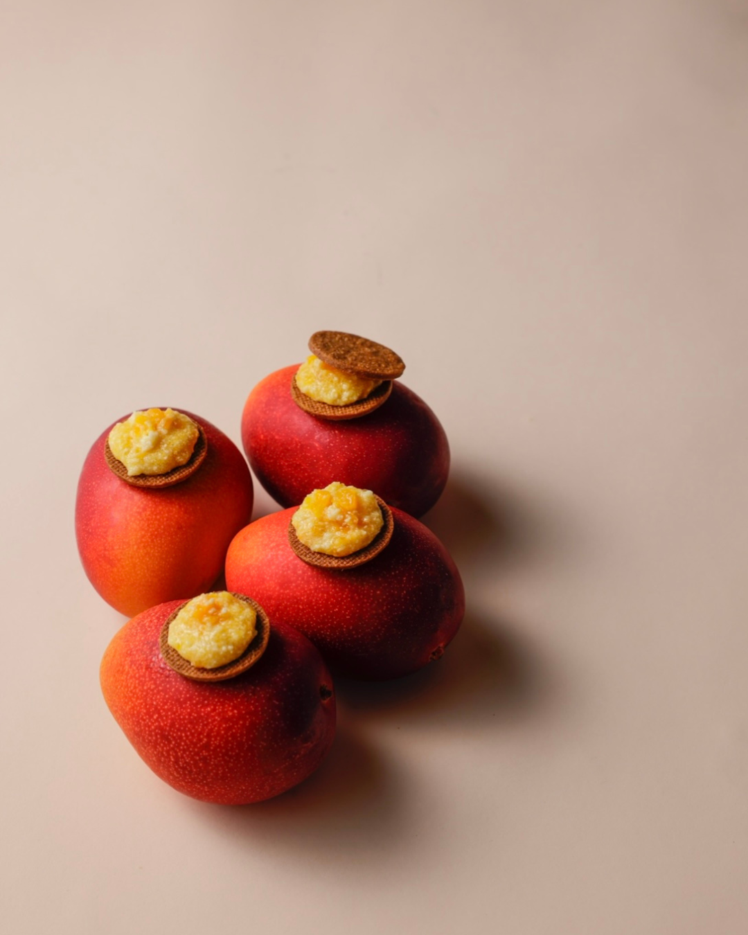 旬の宮崎マンゴーの果肉を自家製ピューレにし、ゴロッとカットした果肉とともにオリジナルバタークリームに練り込み、贅沢なのに重くない絶妙なバランスで仕上げました。