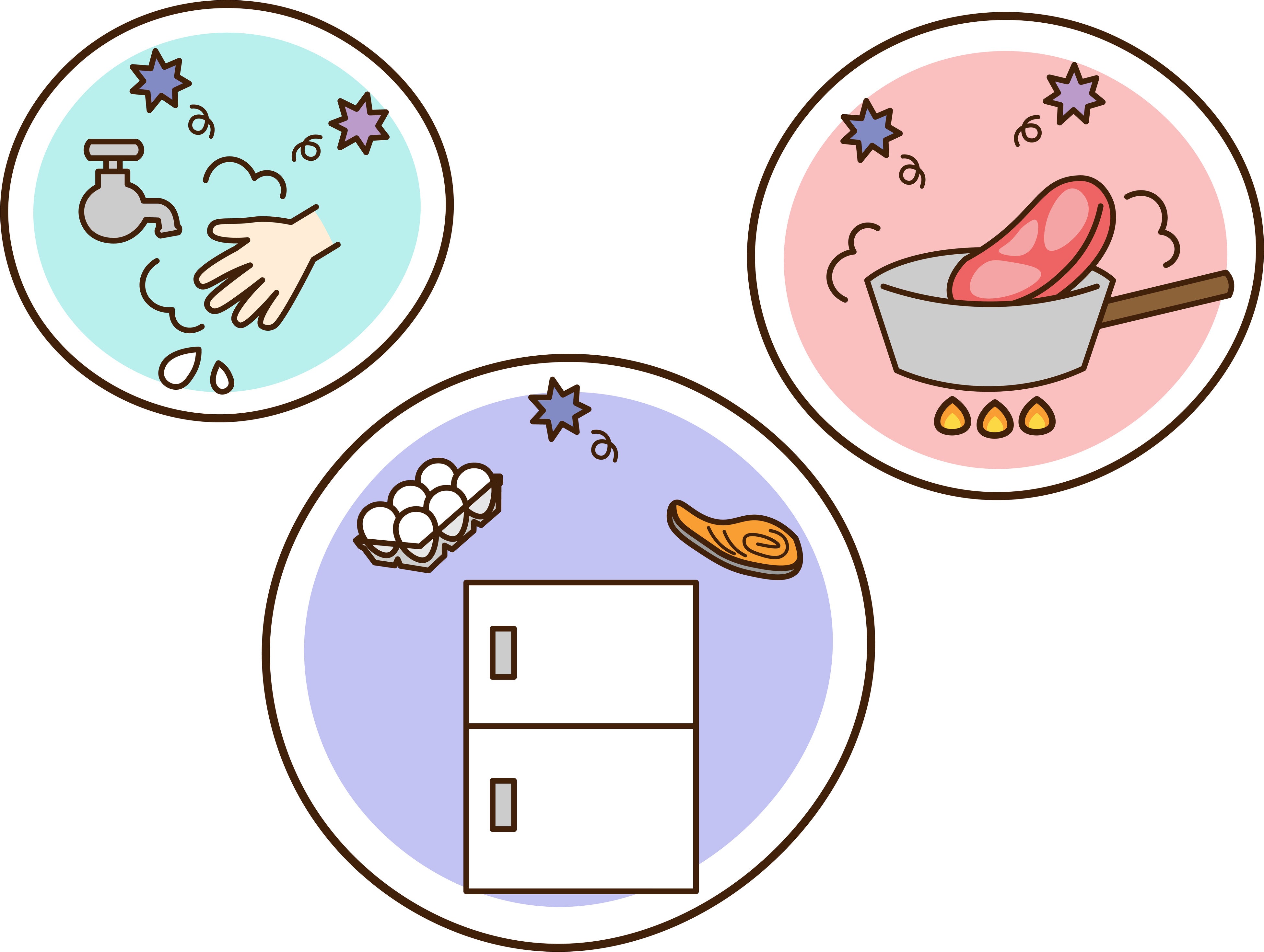 一方、ウイルスは、細菌のように食べ物の中では増殖しませんが、食べ物を通じて体内に入ると、人の腸管内で増殖し、食中毒を引き起こすと言われています。