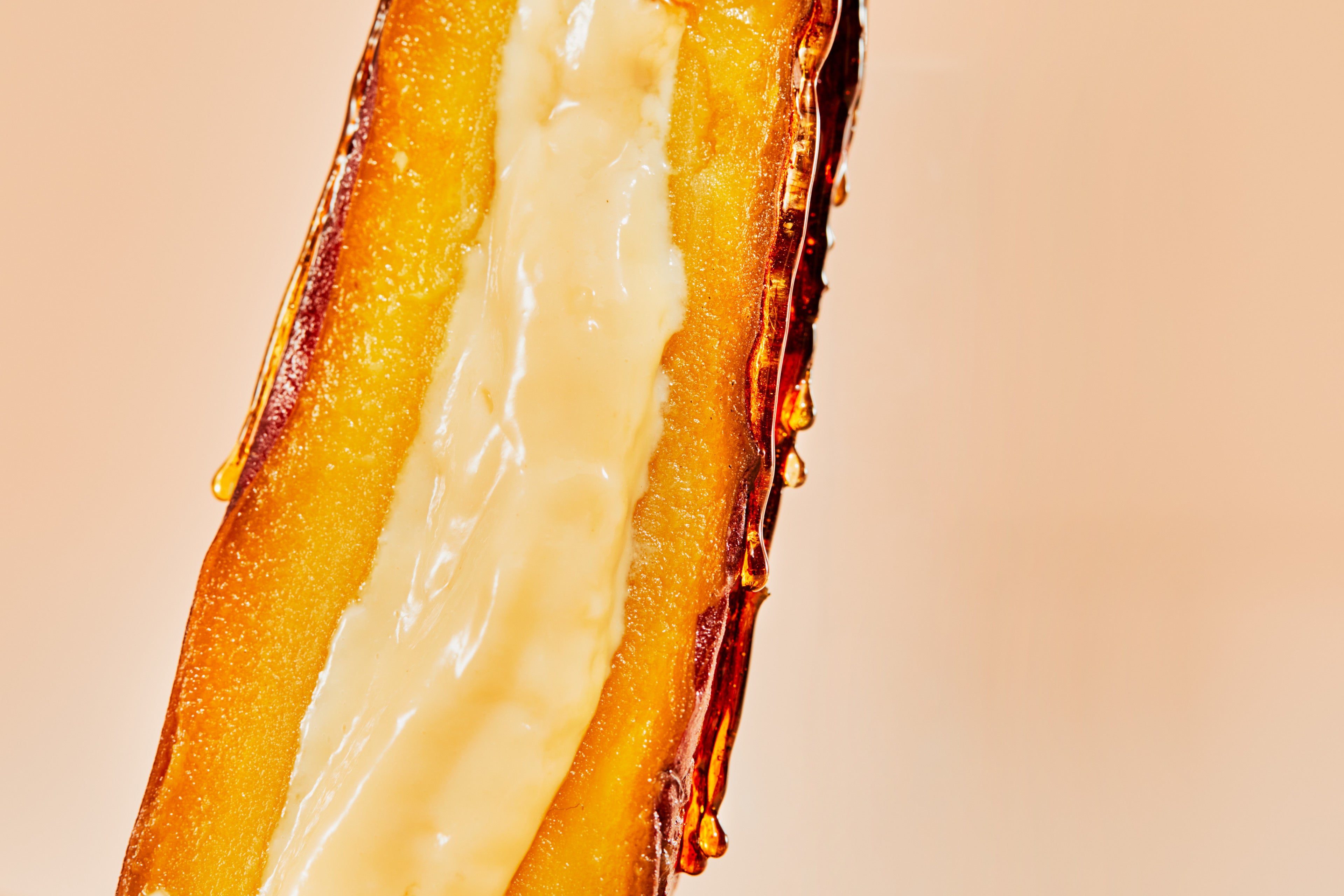 壺芋ブリュレに使用するお芋は、一つ一つ専用の壺で丁寧に焼くことで蜜がしたたるほどとろとろに。夏季限定のふわふわ氷「濃涼・壺芋かき氷」は、そんな壺焼き芋を煮詰めて凝縮した爽やかなシロップに、芋ペーストが合わさった特別な一品です。仕上げには爽やかな氷とペーストを包む濃厚クリームとパリパリのブリュレチップス。昨年、期間限定出店したSHIBUYA109で人気となり商品化した「蜜芋ブリュレ」をトッピング。