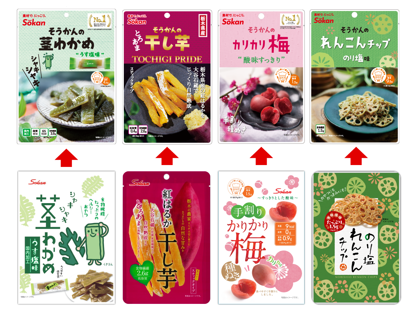 CIの刷新と併せて、「茎わかめ」や「干し芋」など主要商品のパッケージデザインをリニューアルいたします。新しいCIに込めた想いを反映させた統一感のあるパッケージで、より幅広い方々に認知していただき、身近に感じていただけるよう取り組んでいきます。