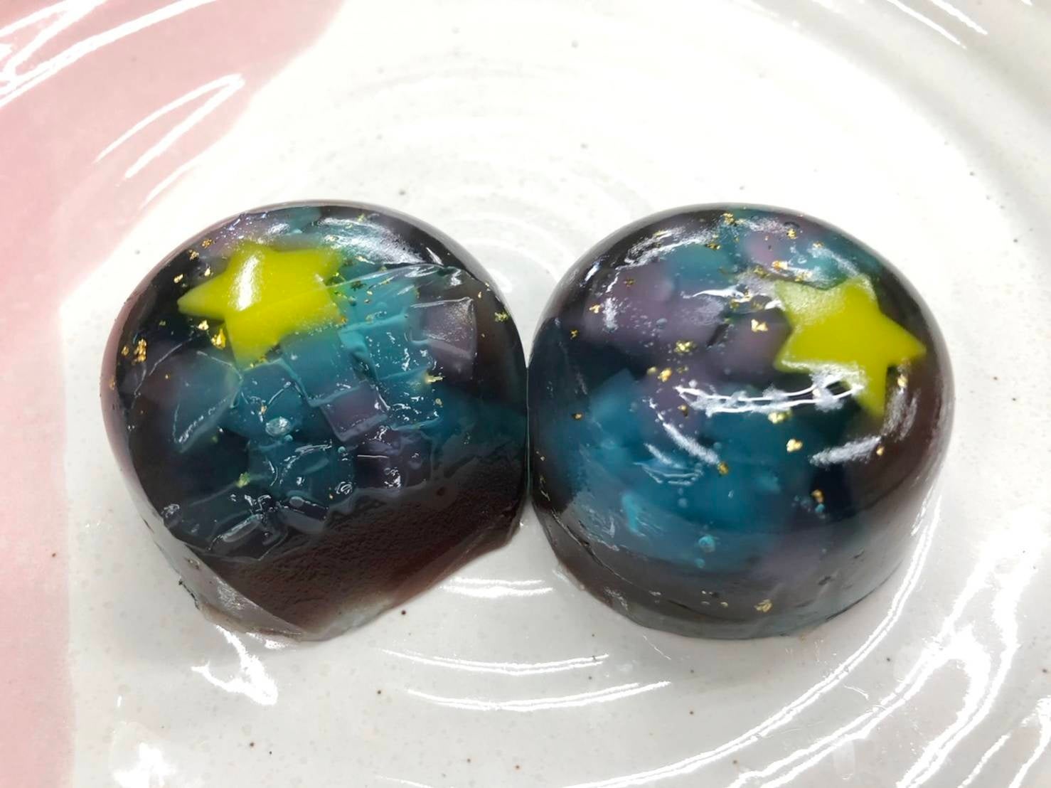 夏の星空をイメージした、冷やして食べる錦玉羹の上生菓子