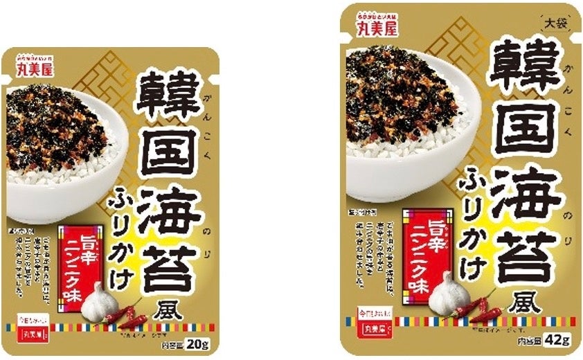 丸美屋食品工業株式会社(本社:東京都杉並区、社長:阿部豊太郎)は、韓国海苔の風味が楽しめる「韓国海苔風ふりかけ」シリーズより、「韓国海苔風ふりかけ<旨辛ニンニク味>N.P.」「韓国海苔風ふりかけ<旨辛ニンニク味>大袋」を2023年8月4日(金)に新発売いたします。