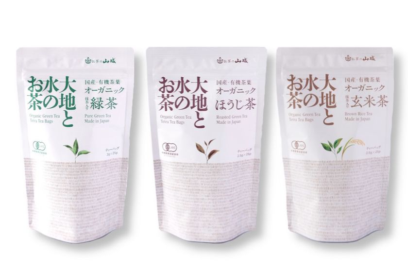 「有機抹茶入り緑茶」、「有機抹茶入り玄米茶」、「有機ほうじ茶」の3種類展開となります。