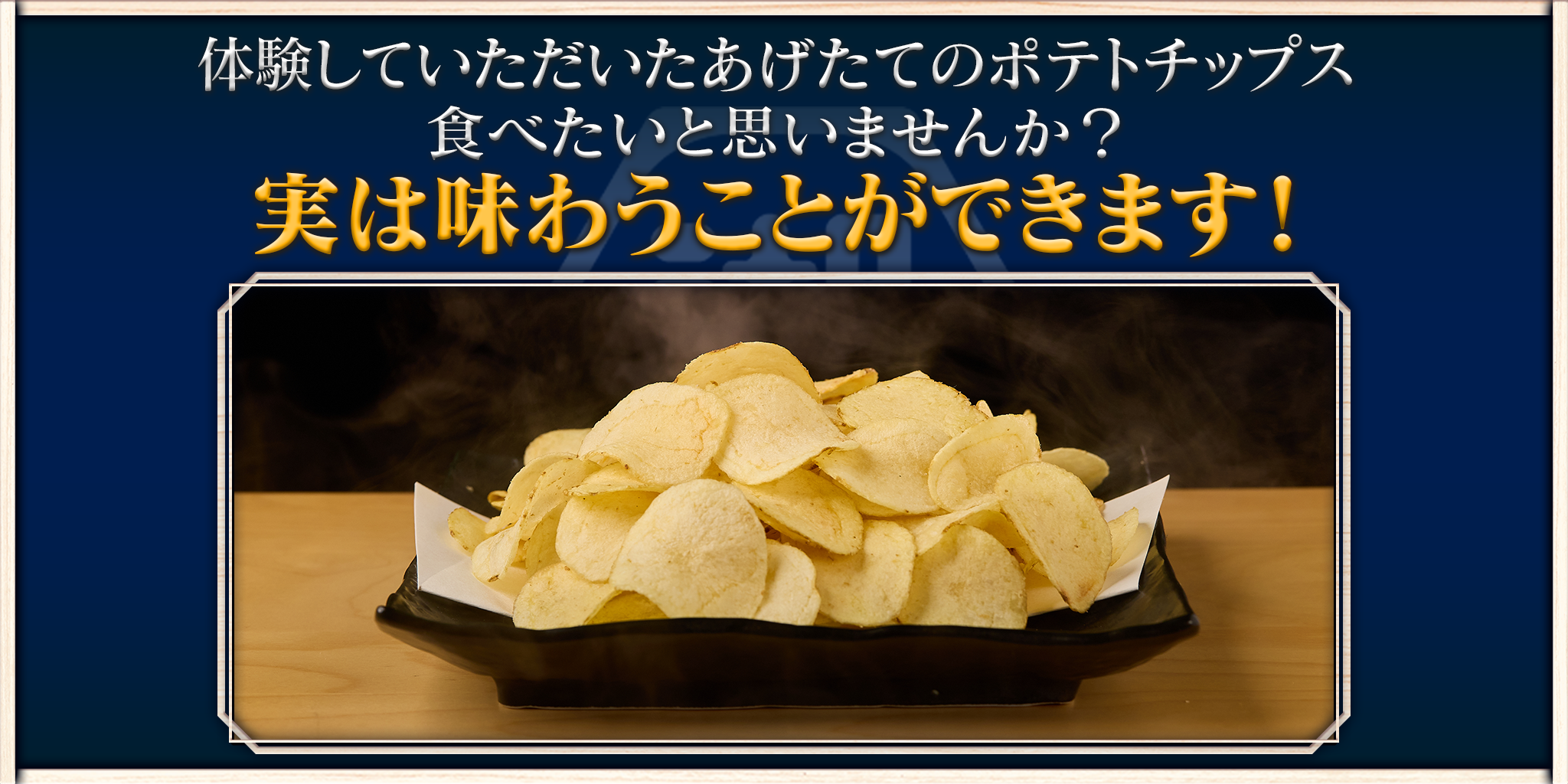 この度、バーチャルマーケットに初出展させていただくこととなりました。ここでしかできないポテトチップス作り体験を通して、普段なかなかお伝えすることができなかった『湖池屋のこだわり』や『ポテトチップスに“鮮度”がある』ということをよりたくさんの方に知っていただきたいと思っております。