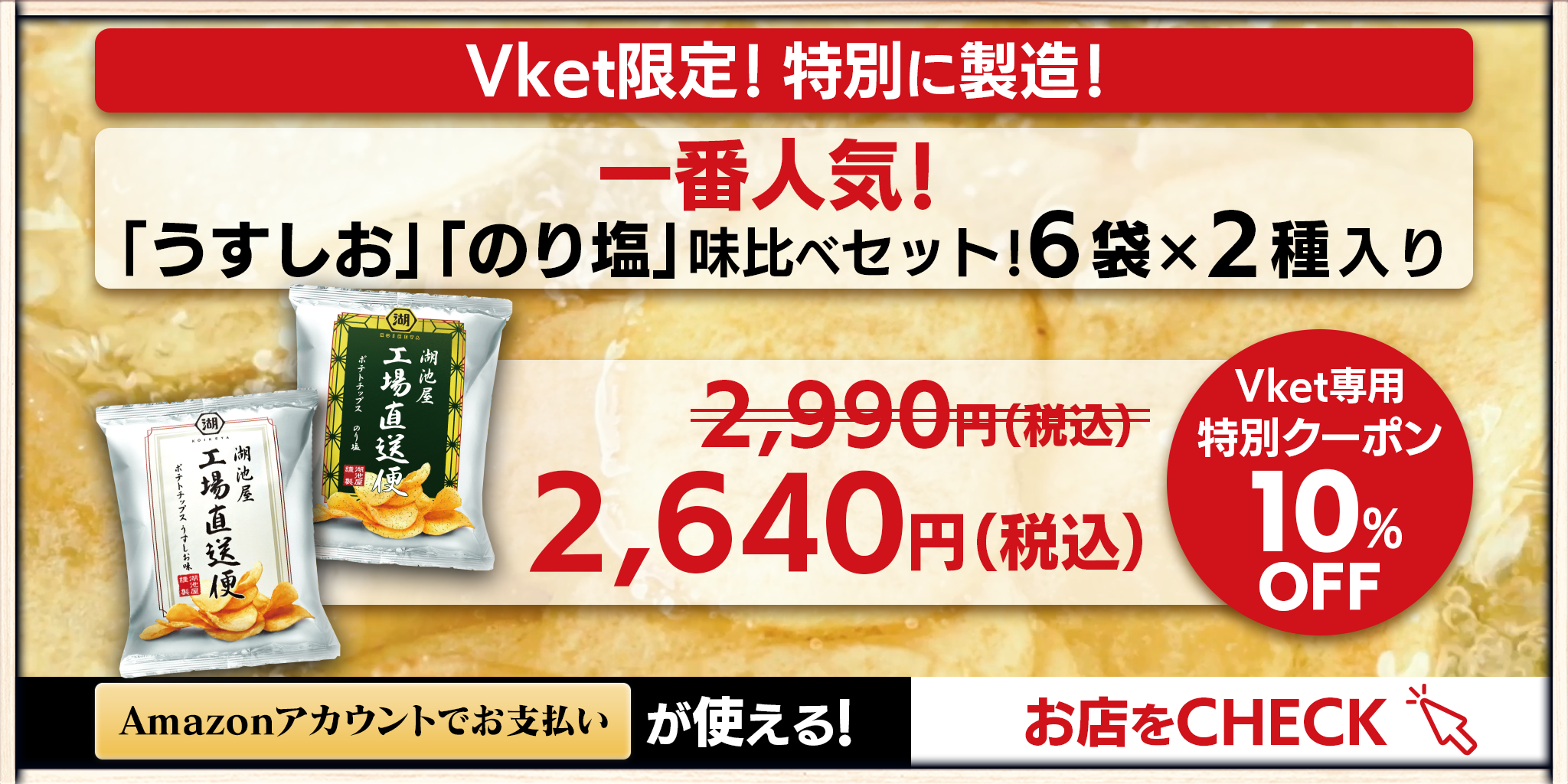 また、揚げたて新鮮な味わいと食感が堪能できる「湖池屋工場直送便 ポテトチップス」をバーチャルマーケットのお客様限定でお得にお買い求めいただける特別なクーポンもご用意させていただきます。この夏新発売の商品も展開予定ですので、ご期待ください!湖池屋ブースが、より”揚げ揚げ”な体験になること間違いなし!ぜひ、ご参加ください!