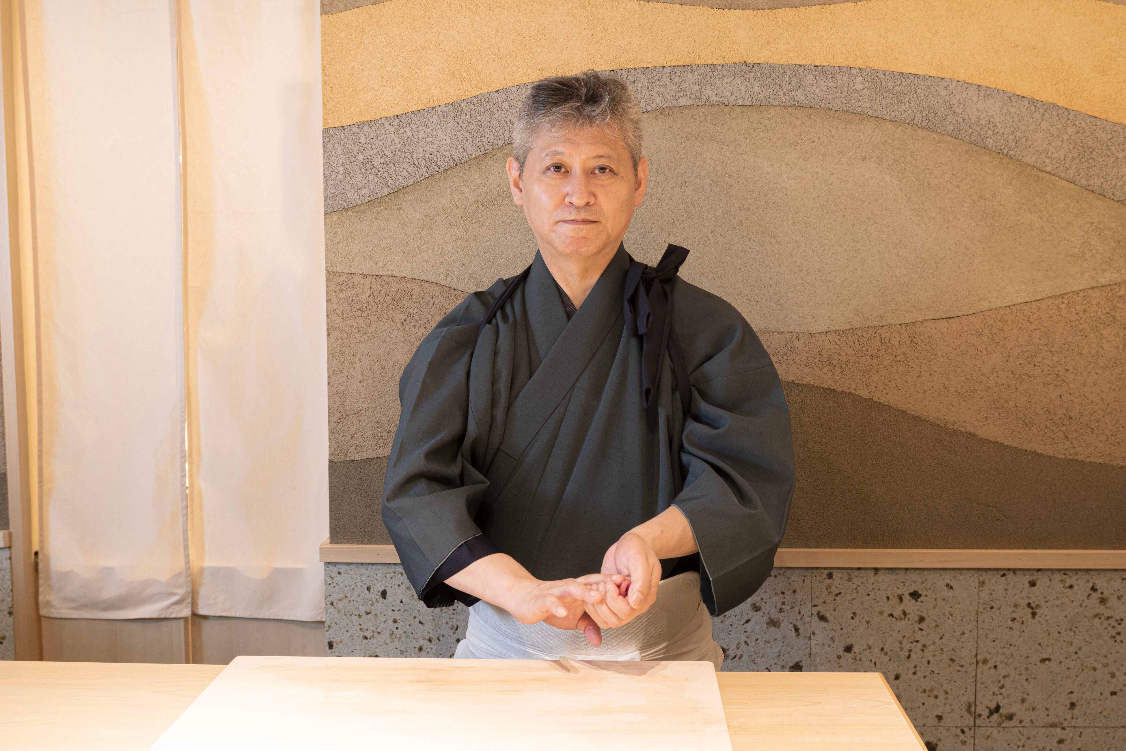 「最初から最後までメインディッシュとして、一貫一貫心を込めて握ります。」と語りカウンター前に立つ株式会社幸凛(本社:台東区 代表:木福昌幸)の大将・木福は 2023年7月25日、