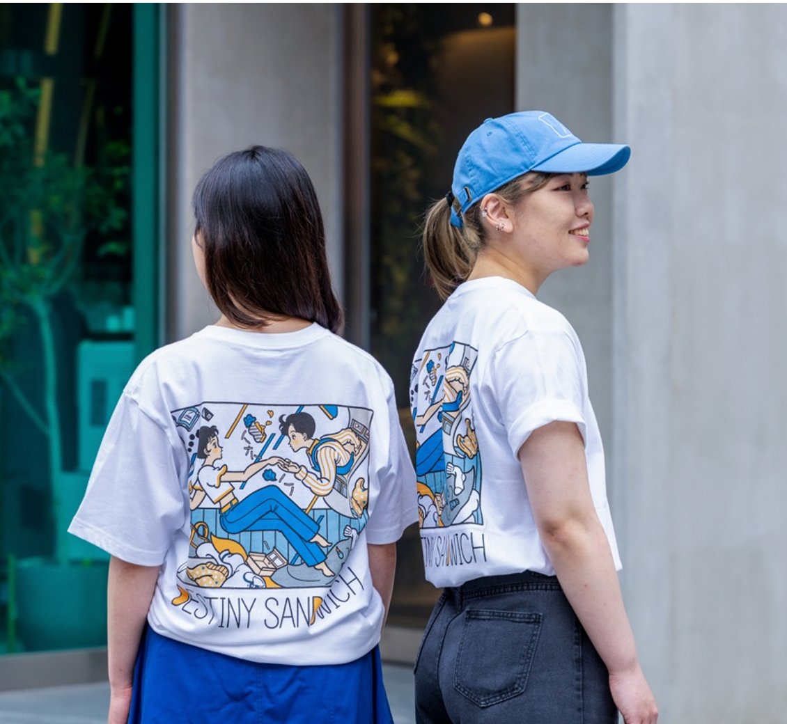 そして今回は7月12日(水)から販売するサンレモ氏初のイラスト本にslash川崎のコラボアートが掲載されることを記念して、販売同日よりホテル内レストラン「slash cafe&bar川崎」にて、本イベント限定の新しいコラボメニューにサンレモ氏をイメージして考案したアメリカンレモネード、バジルレモネードサワー、ノンアルコールジントニックの3種に“DESTINY SANDWICH”のステッカーをカップにデザインしたこの期間だけのコラボドリンクを販売。さらにslash川崎を利用する多くのゲストがホテル滞在中に楽しんでいる“映画”をテーマにしたキャンバス画の展示や“DESTINY SANDWICH“がバックプリントされたオリジナルTシャツやステッカーの2種のグッズを再販致します。