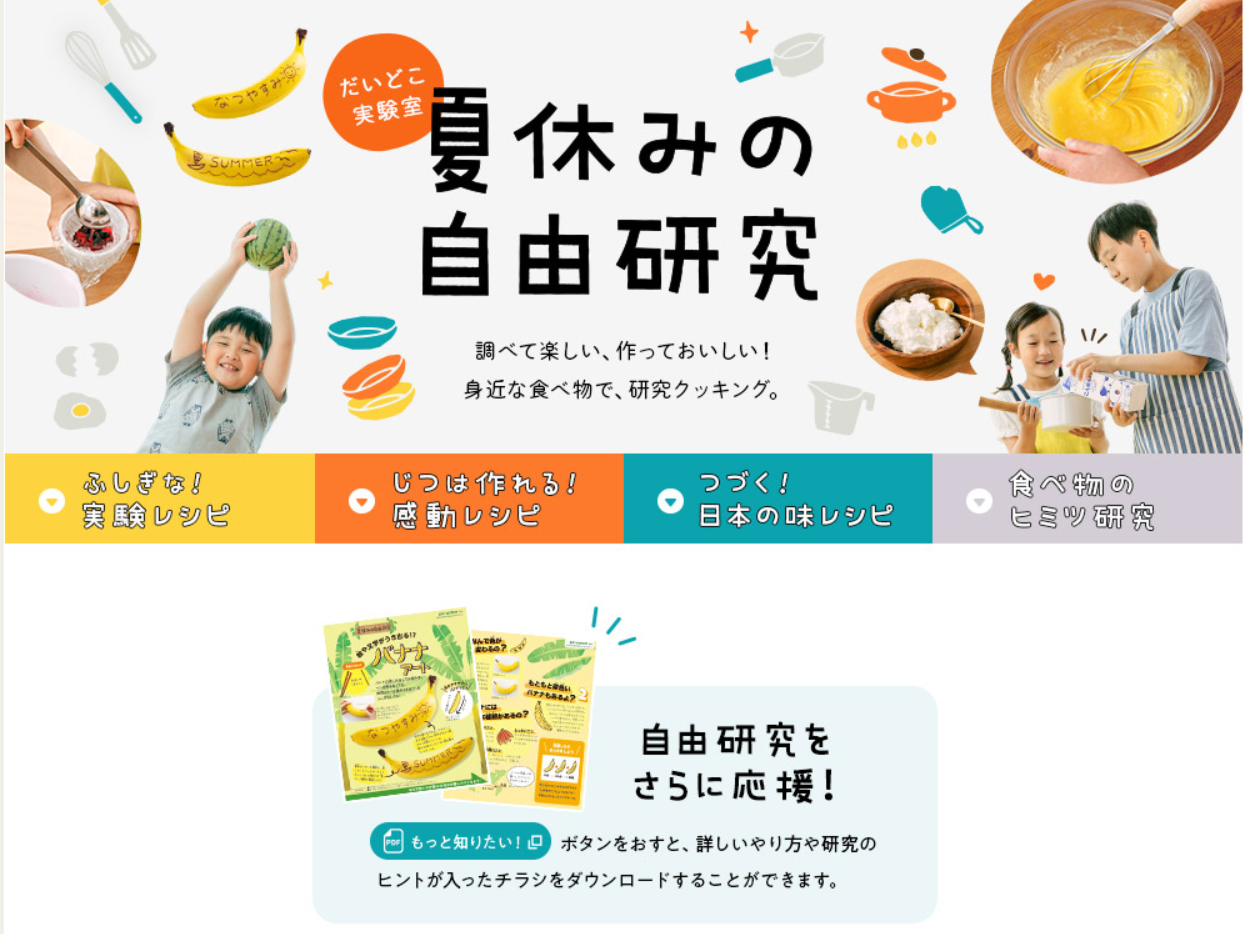 【サイト名】だいどこ実験室『夏休みの自由研究』