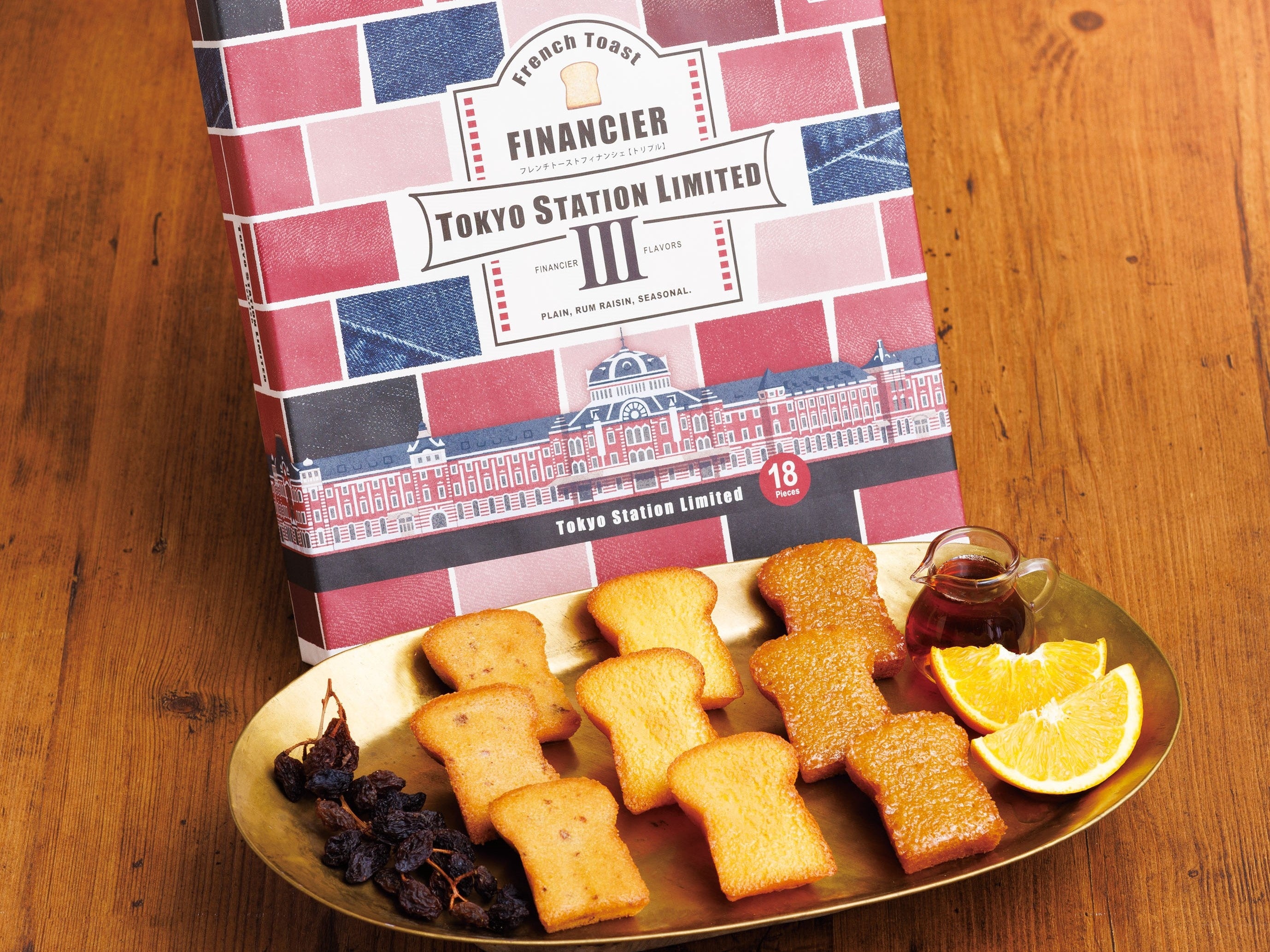 Ivorish一番人気商品「フレンチトーストフィナンシェ」の詰め合わせ。「フレンチトーストフィナンシェラムレーズン」と季節フレーバーの3種入り、東京駅限定パッケージでIvorishらしくレトロアメリカン風のデザインです。