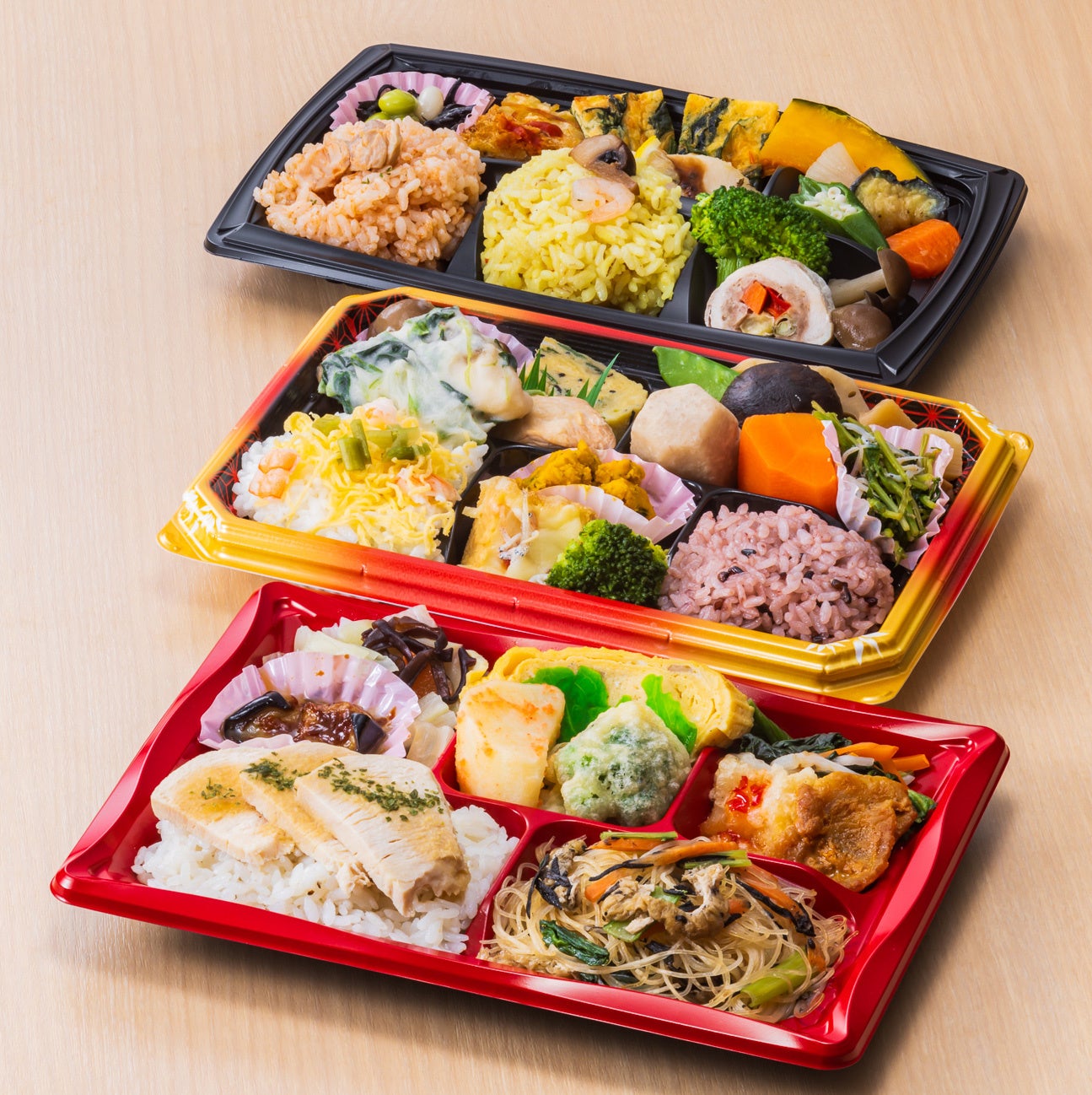 健康弁当が選べるセットとしてリニューアル。3種の健康弁当の中から個数、種類が自由に選べるようになりました。和洋メニューのお弁当と組み合わせやシチュエーションを変えて食べ比べもおすすめです。