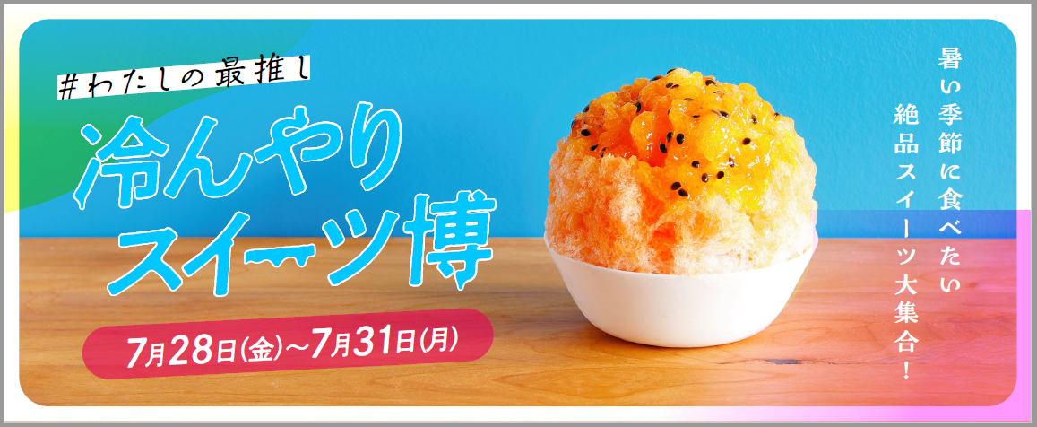 7月28日(金)~7月31日(月)の期間で、「#わたしの最推し 冷んやりスイーツ博」を開催します。暑い季節に食べたくなる、絶品の冷んやりスイーツが集合します。