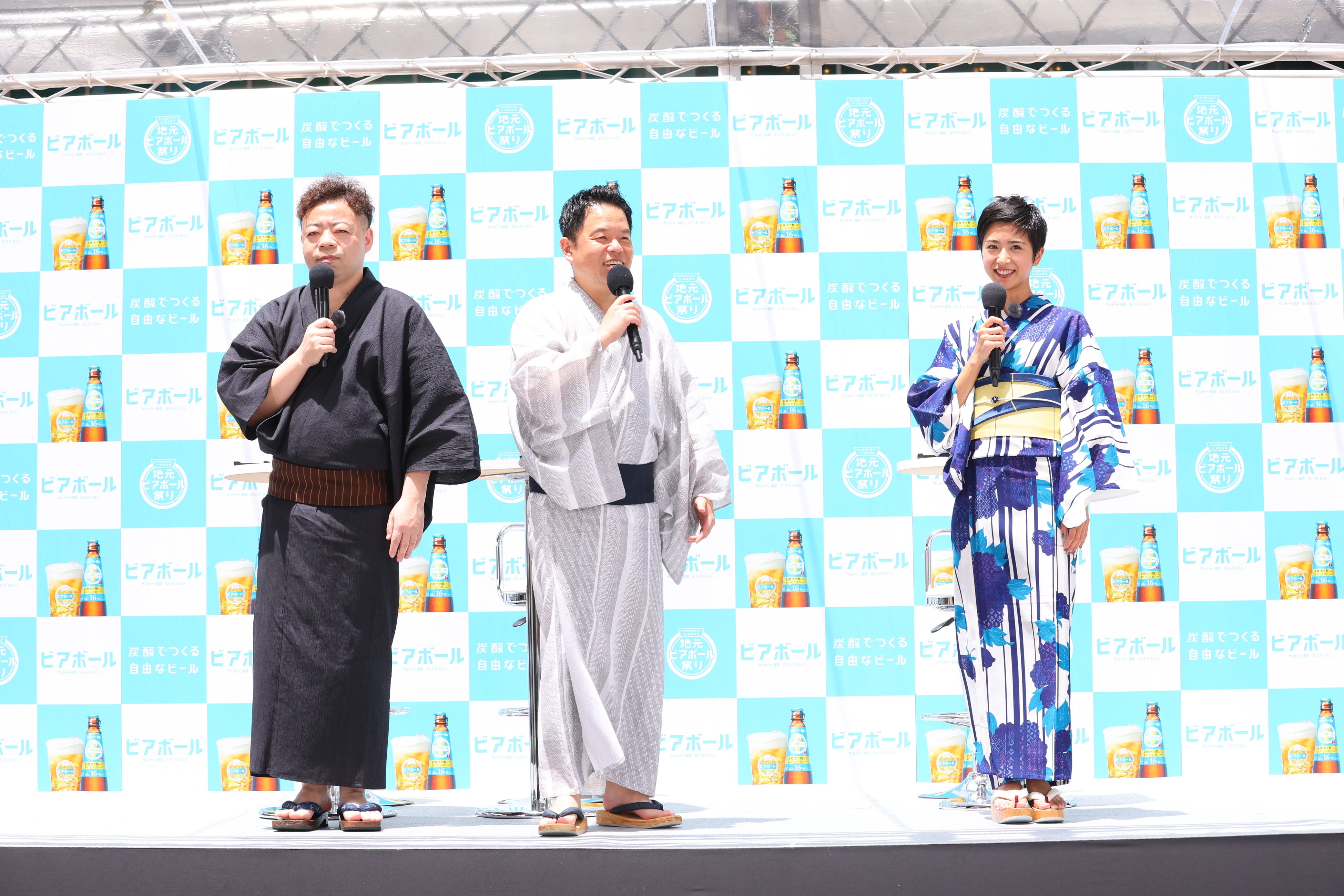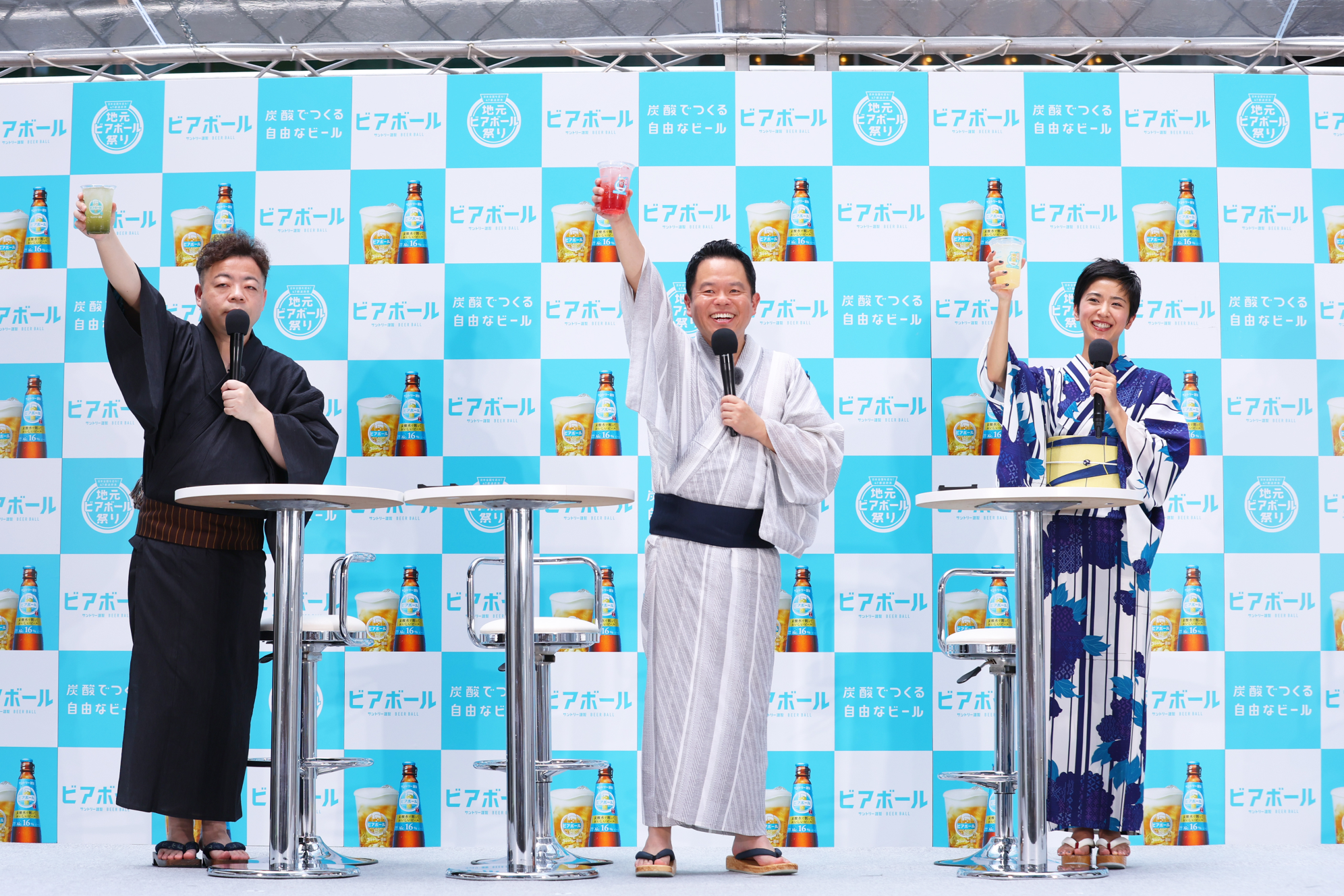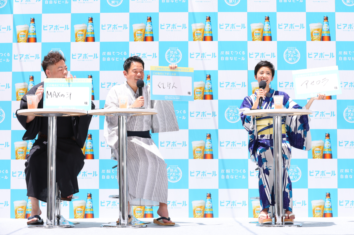 イベント開催を祝し、3人には「ビアボール!」という掛け声のもと、お祭りの幕開けにふさわしい元気な乾杯をしていただきました。