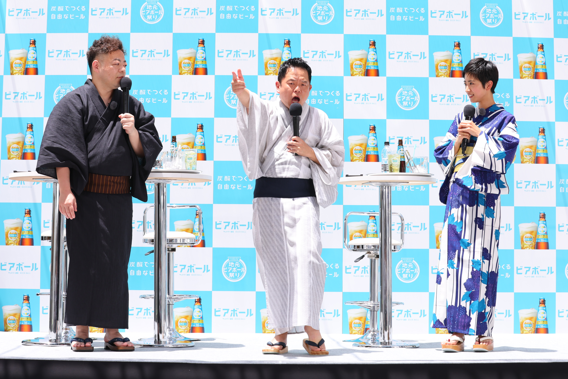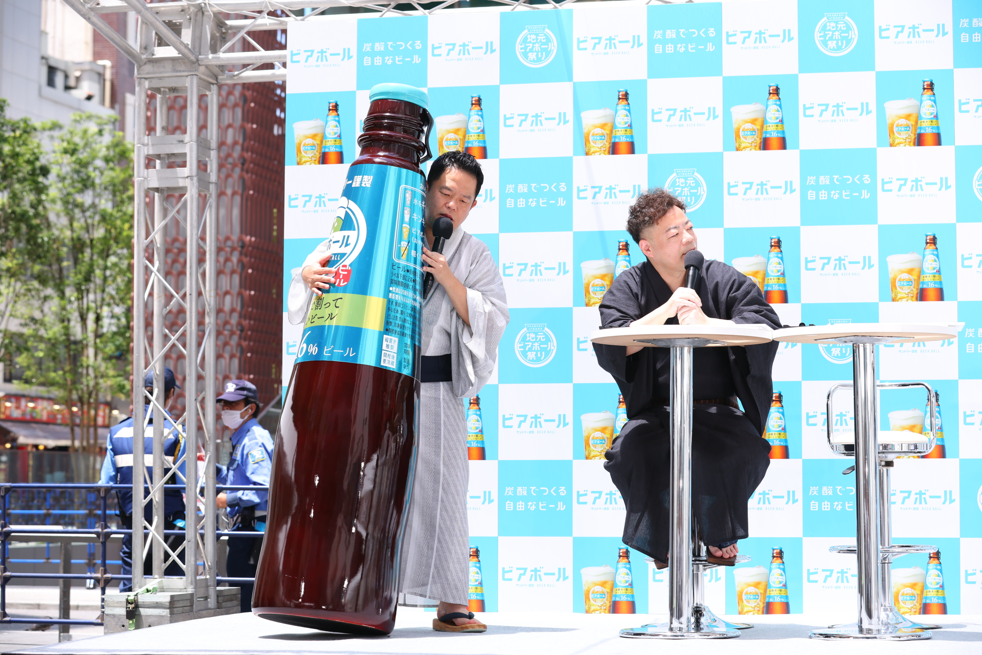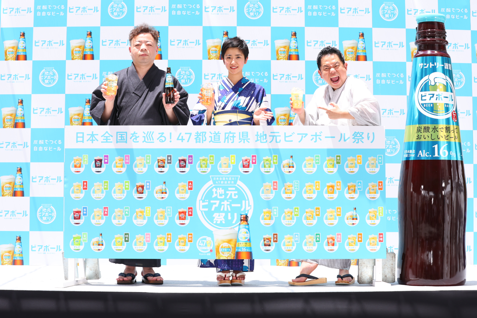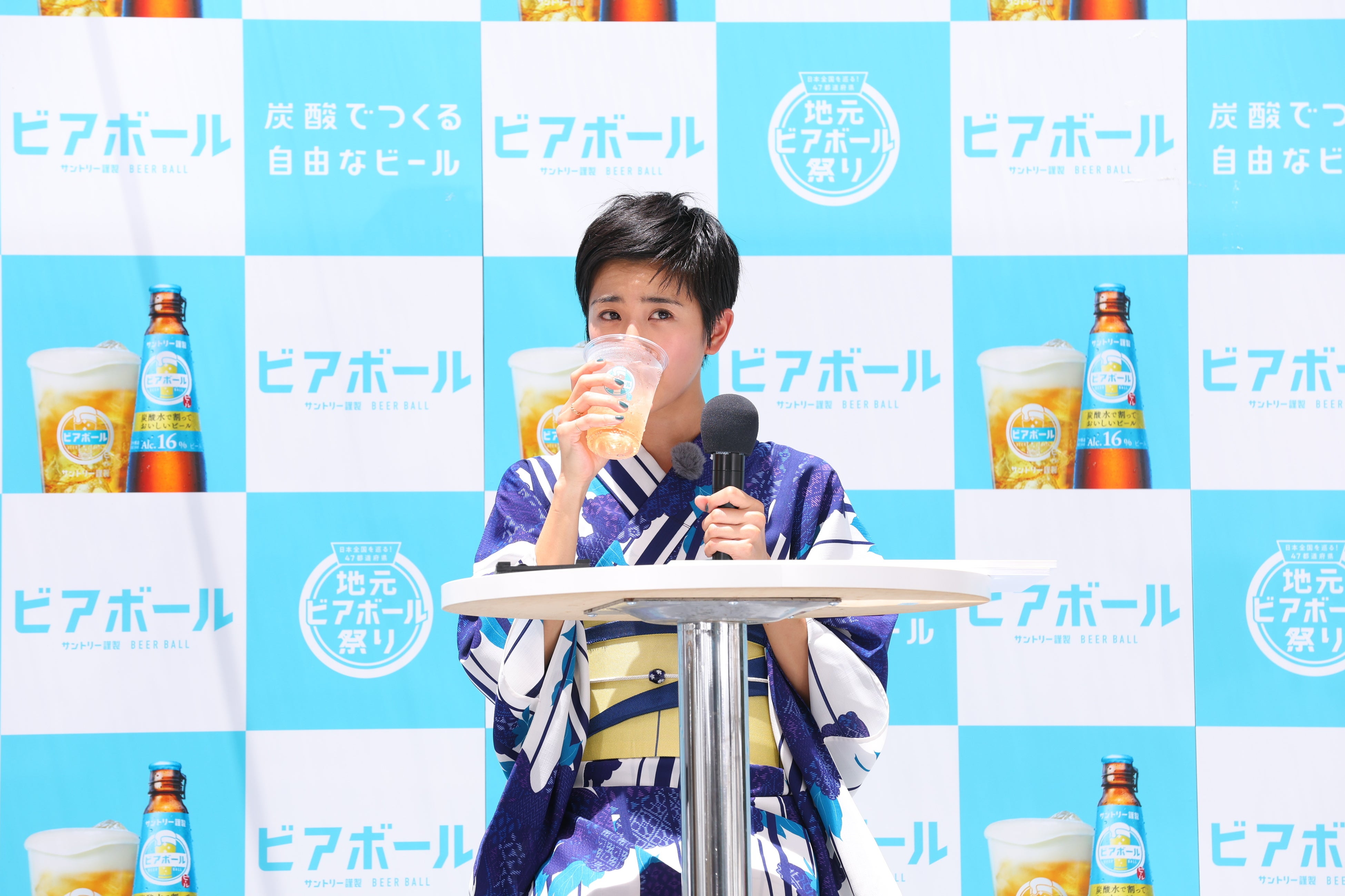 このたび、取り組みの一環として、自由につくって楽しめるビアボールならではの特長を活かし、全国47都道府県のご当地素材などを組み合わせたオリジナルビアボール「地元ビアボール」を楽しめる「日本全国を巡る!47都道府県 地元ビアボール祭り」を今注目のスポット東急歌舞伎町タワーにて本日7月6日(木)から7月9日(日)まで期間限定で開催します。開催に先駆け、2023年7月6日(木)11:00より、「ビアボール」のCMに出演中の女優 黒島結菜さんと、芸人 ダイアンさんを迎えた「地元ビアボール祭り」の発表会と体験会を実施しました。