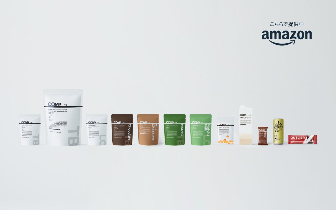 COMPは場面ごとに最適な栄養摂取を、厳密に設計された製品の開発によって提案し続ける栄養食ブランドです。厚生労働省「日本人の食事摂取基準(2020年版)」を参考に「完全食」「完全栄養食」をコンセプト*としたトータルバランスドモデル(TB)、食事において摂取する糖質量の調整を容易にする糖質調整モデル(LC)、エナジーバーやエナジードリンクなどの特定の課題解決を目指すためのコンセプトモデル(C)の栄養モデルをご用意。パウダー、グミ、ドリンク、バー・ブロック、アイス等、幅広いアプリケーション展開を実現する開発力も特徴です。