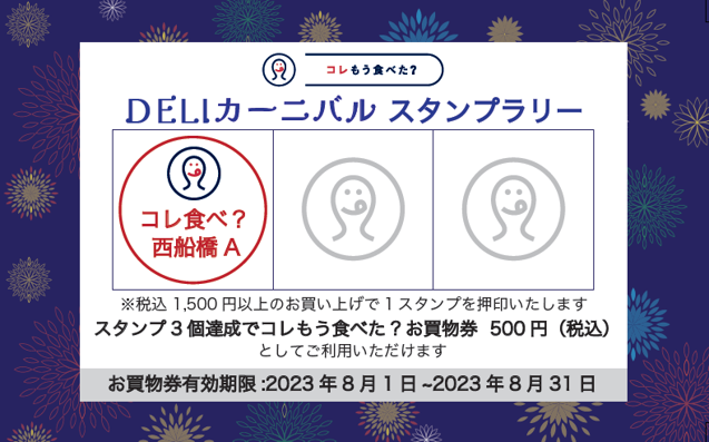 ・期間中には、DELIスタンプラリーも開催します。スタンプを3個集めると、お得なお買物券としてご利用いただけます。