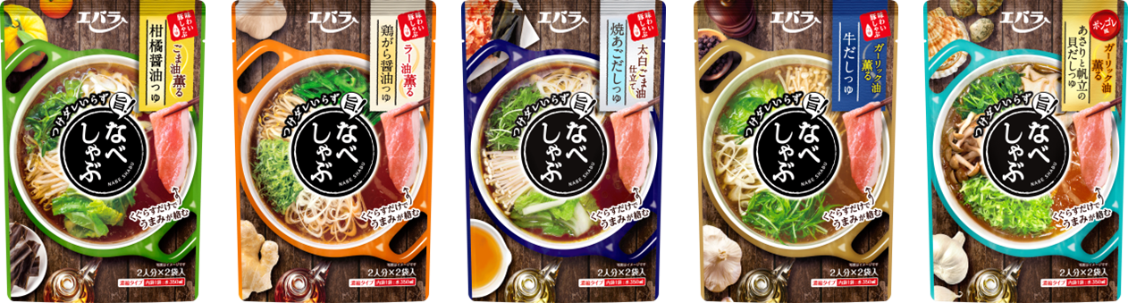 「なべしゃぶ」は2018年に発売後、つけだれいらずのしゃぶしゃぶという新しいスタイルの手軽さと、肉はもちろん野菜をたくさん食べられる良さが支持されて、しゃぶしゃぶつゆ市場売上げナンバーワン(※)を獲得しています。今回、洋風テイストの「あさりと帆立の貝だしつゆ」を発売することで、全5品のラインアップを展開し、味わいしゃぶしゃぶつゆの楽しさを広げてまいります。