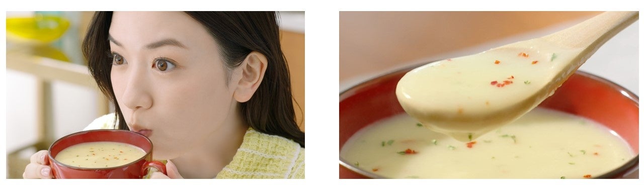 また、永野芽郁さんをCMキャラクターに起用した地上波スポットTVCMを10月より放映し、“豆を主素材 としたポタージュスープ”という新たなメニューの魅力を伝え、早期の製品認知獲得を図ります。3種の豆が溶け込んだスープの濃厚でクリーミーなシズル表現と、スープを飲む永野さんの至福の表情が見所です。