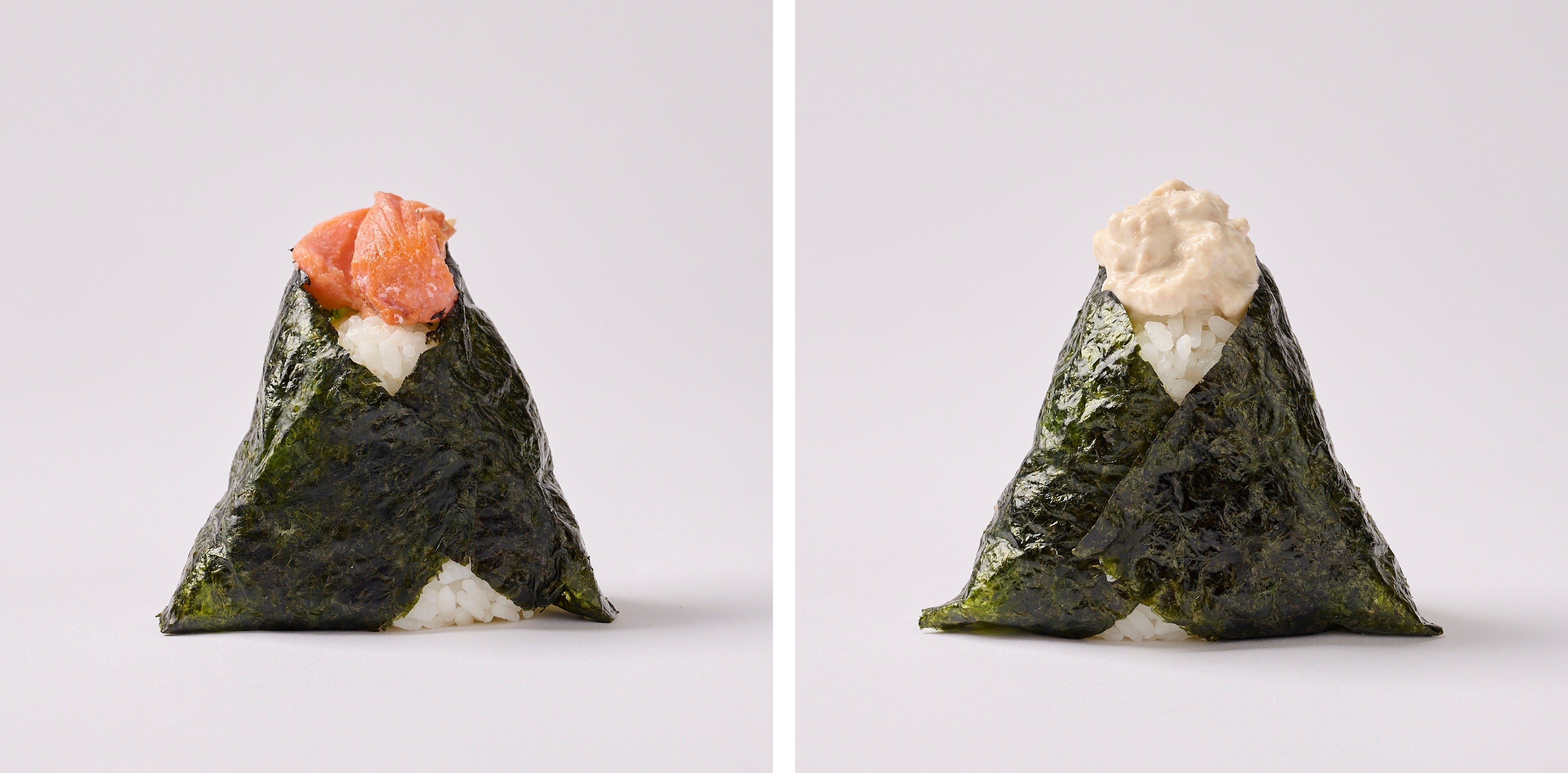 左)九十九里の天然塩の多古米贅沢塩おにぎり(海苔付き)
