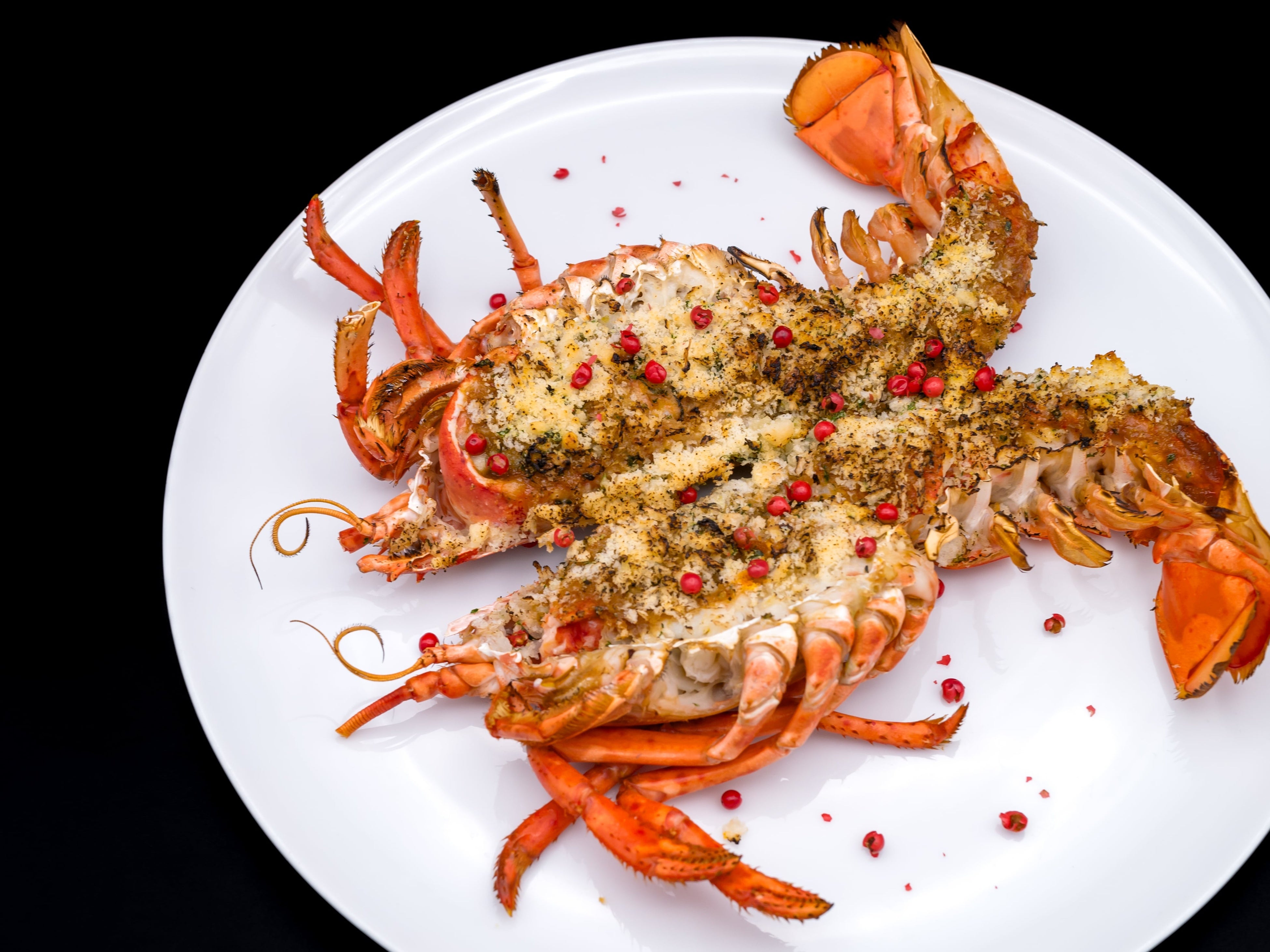 贅沢に丸々一尾を使用し、ロブスターの旨みを凝縮したアメリケーヌソース、香草、パン粉を乗せて香ばしく焼き上げました。